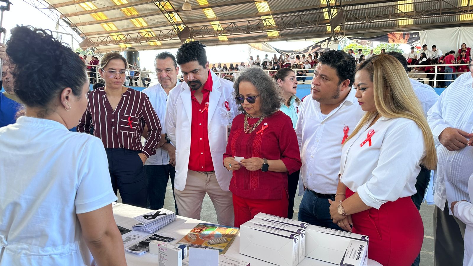 Programa de VIH en Yucatán de la Secretaría de Salud, Dulce Cruz Lavadores; el director de Salud del Ayuntamiento de Kanasín, José Rodríguez Gamboa; el responsable del Centro de Salud en Kanasín, Jorge Ismael Ayora Sosa; y, la directora del Centro de Salud de San José en Kanasín, Claudia Ramos Farjat…(OGY)