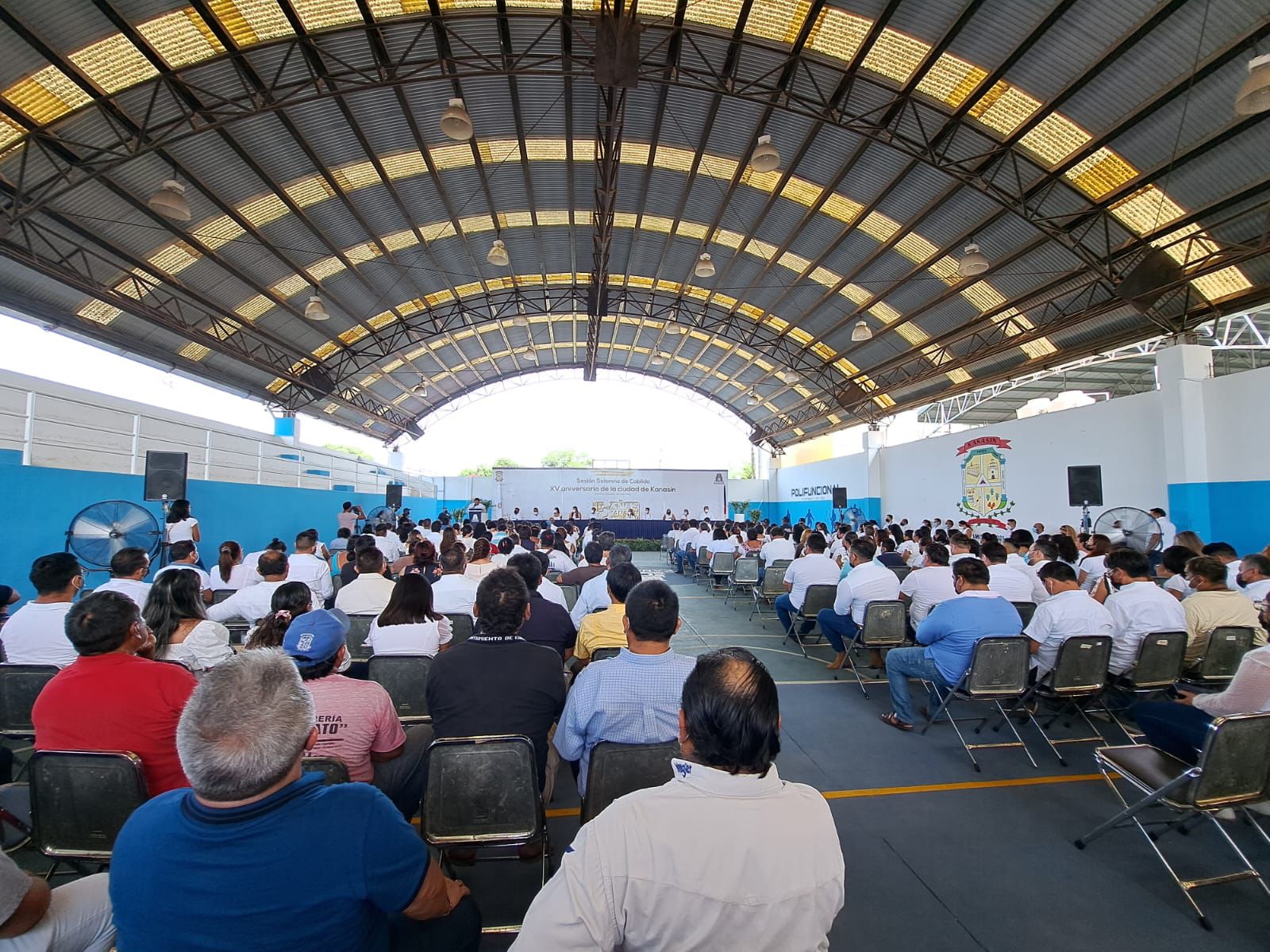 La Sesión Solemne de Cabildo se realizó en el Gimnasio Polifuncional de Kanasín e incluyó la lectura de acuerdo de Cabildo con fecha 23 de julio del 2007, a través de la cual se declaró que la cabecera municipal de Kanasín fuera elevada a la categoría política de ciudad.