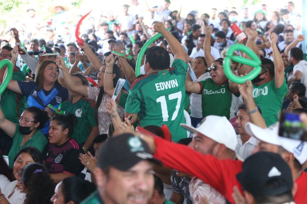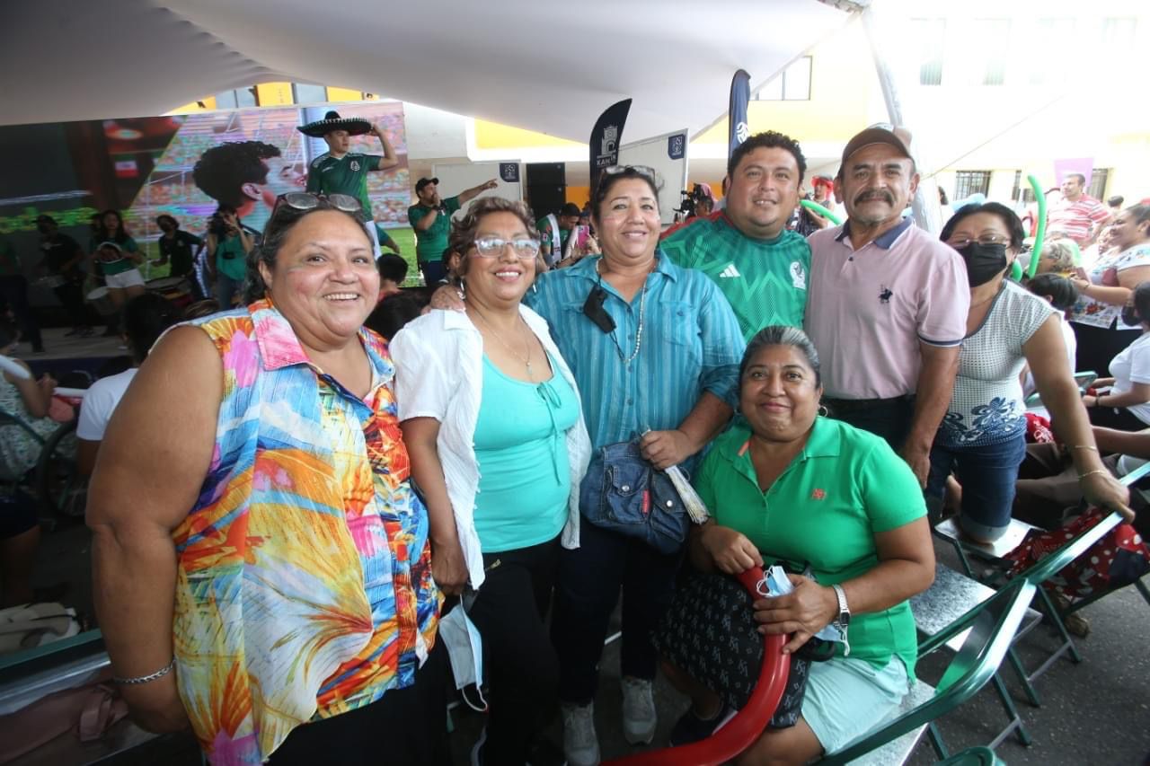 El parque principal de Kanasín se llenó esta mañana de decenas de aficionados al fútbol que se dieron cita para disfrutar del partido entre México-Polonia, el cual sirvió de debut de la selección nacional en el Mundial Qatar 2022.
