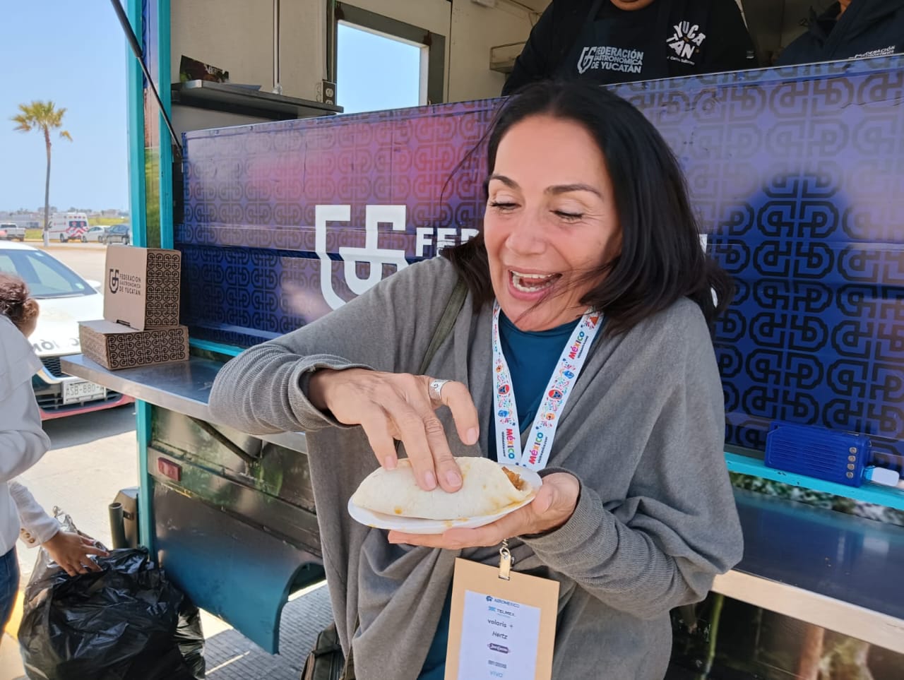 En su recorrido por Tijuana, el “Yucatruck” de la Federación Gastronómica de Yucatán llegó hasta el Baja California Center, lugar que desde este día alberga a miles de visitantes, nacionales y extranjeros, de la Edición 49 del Tianguis Turístico de México 2025, y donde continuó una gira de promoción exitosa, repartiendo miles de tacos de cochinita pibil en esa ciudad fronteriza.