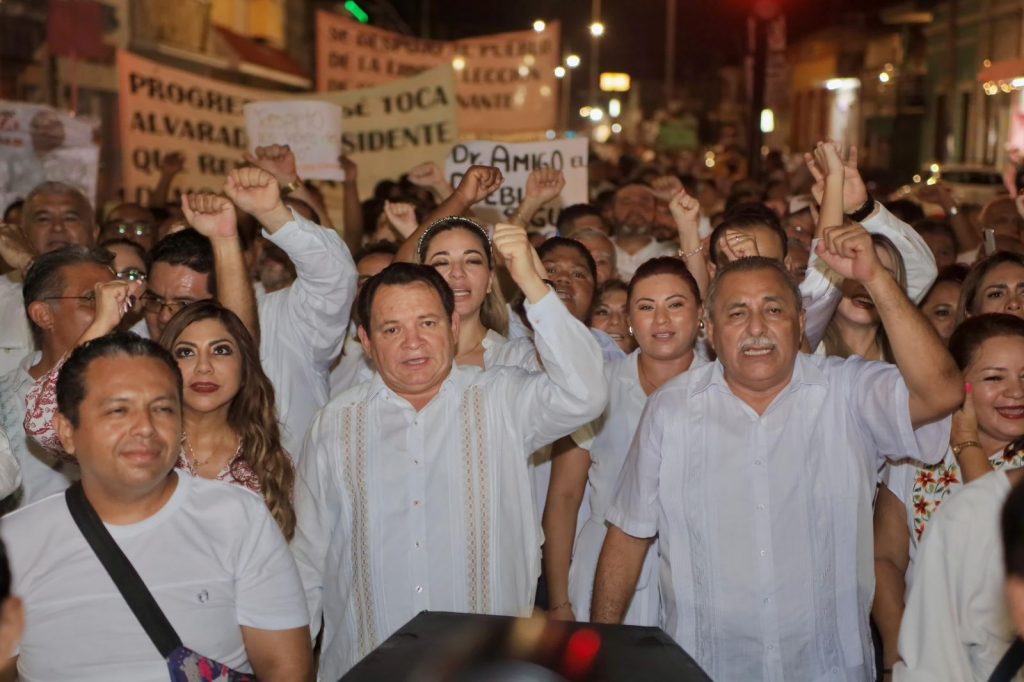 Frente al Palacio Municipal de Progreso, el Gobernador Electo de Yucatán manifestó que la marcha realizada esta noche es para pedir a la Sala Superior del Tribunal Federal Electoral de la Federación “que repare el daño que se le ha hecho al pueblo y municipio de Progreso”.