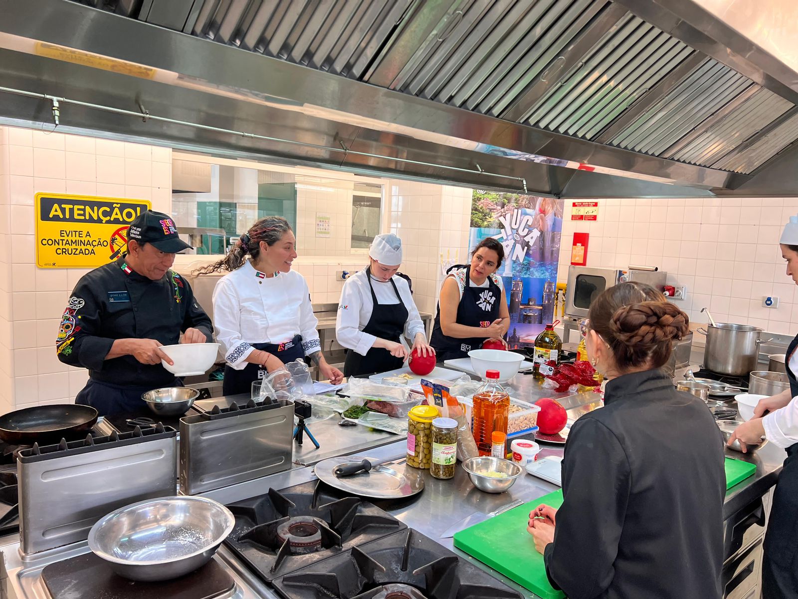 Estudiantes de gastronomía de Portugal aprenden de chef yucatecos a elaborar platillos emblemáticos de Yucatán con técnicas y condimentos originarios de tierras mayas, que incluirán en sus recetarios y promoverán entre sus menús al concluir su preparación profesional.