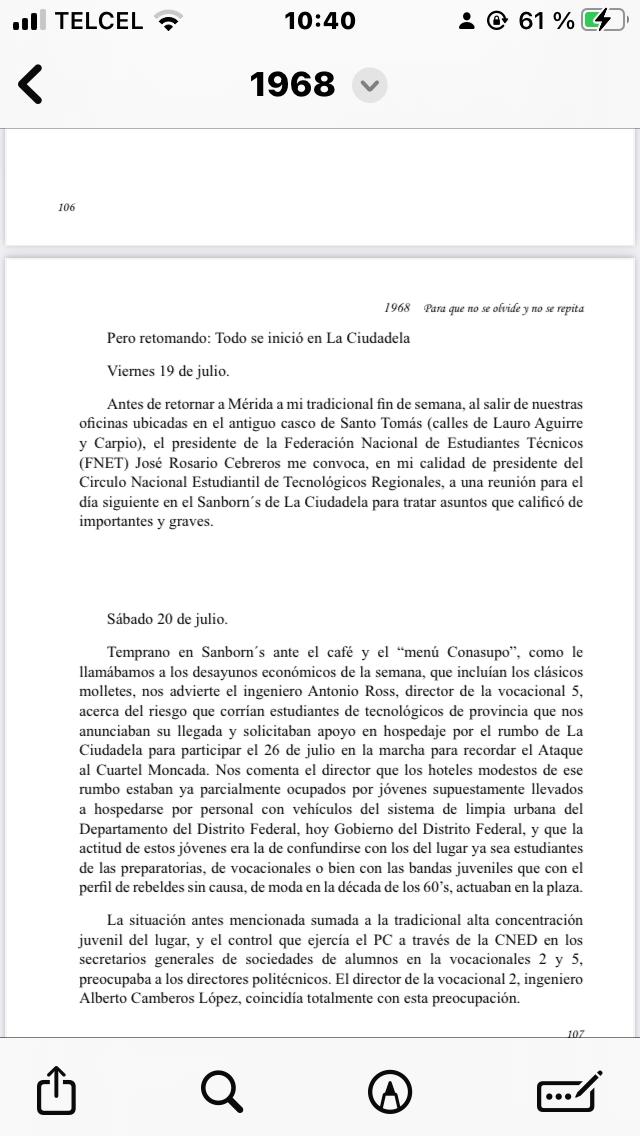 El Movimiento Estudiantil del 68 se inició en en la Ciudadela en julio