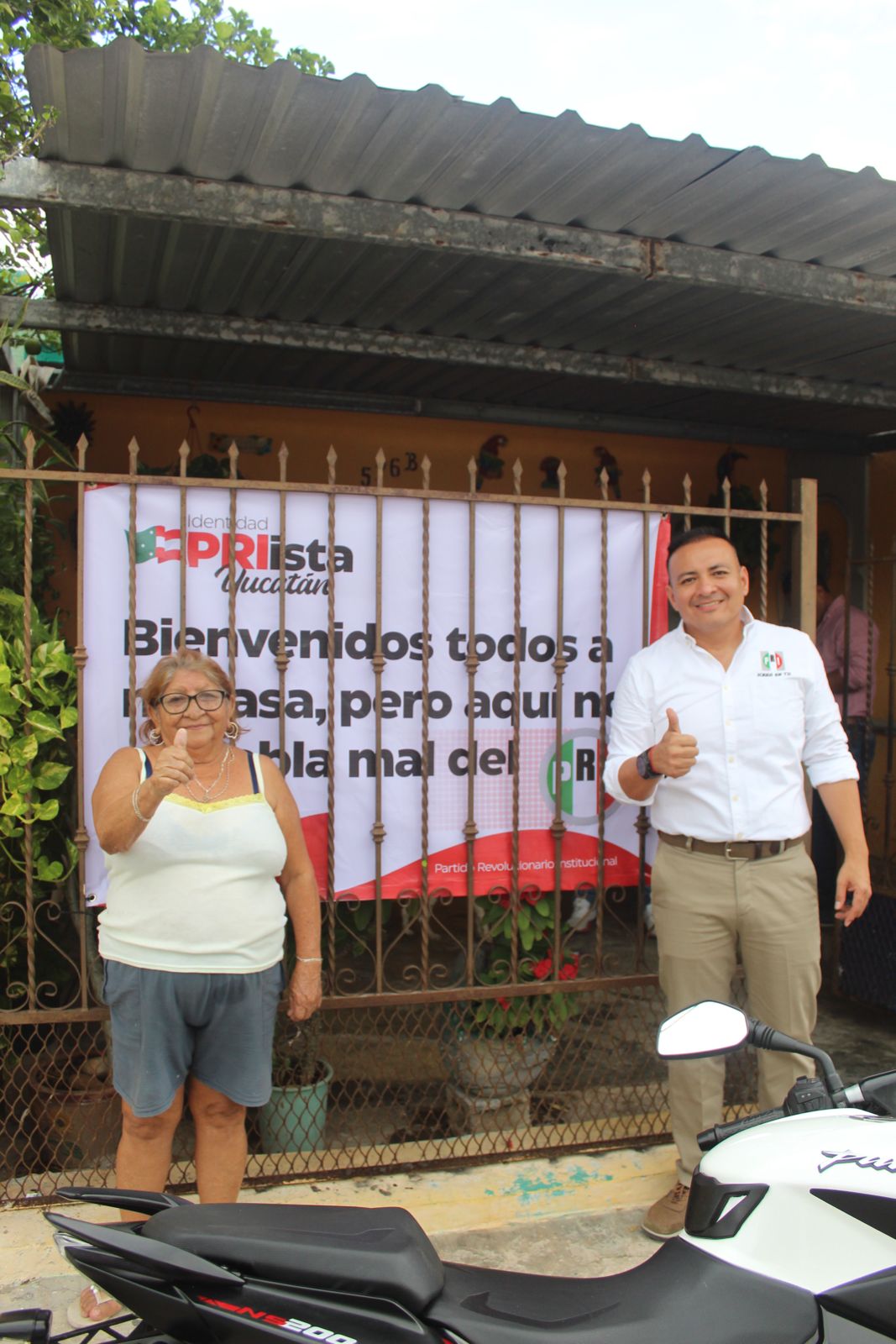 El responsable del Programa Identidad Priísta, Sergio Vadillo Lora, recorre predios de agremiados al tricolor ofreciendo mantas con textos defendiendo a su partido.