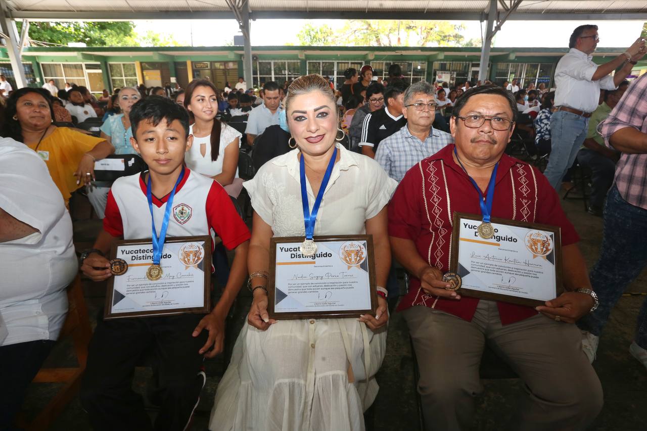 En el marco del evento en la secundaria “Antonio Mediz Bolio”, también se otorgaron las medallas y reconocimientos de “Yucateco Distinguido” al maestro Luis Antonio Kantún Herrera, el estudiante Fernando Israel May Canché y la maestra Nadia Sugey Pérez Torres.