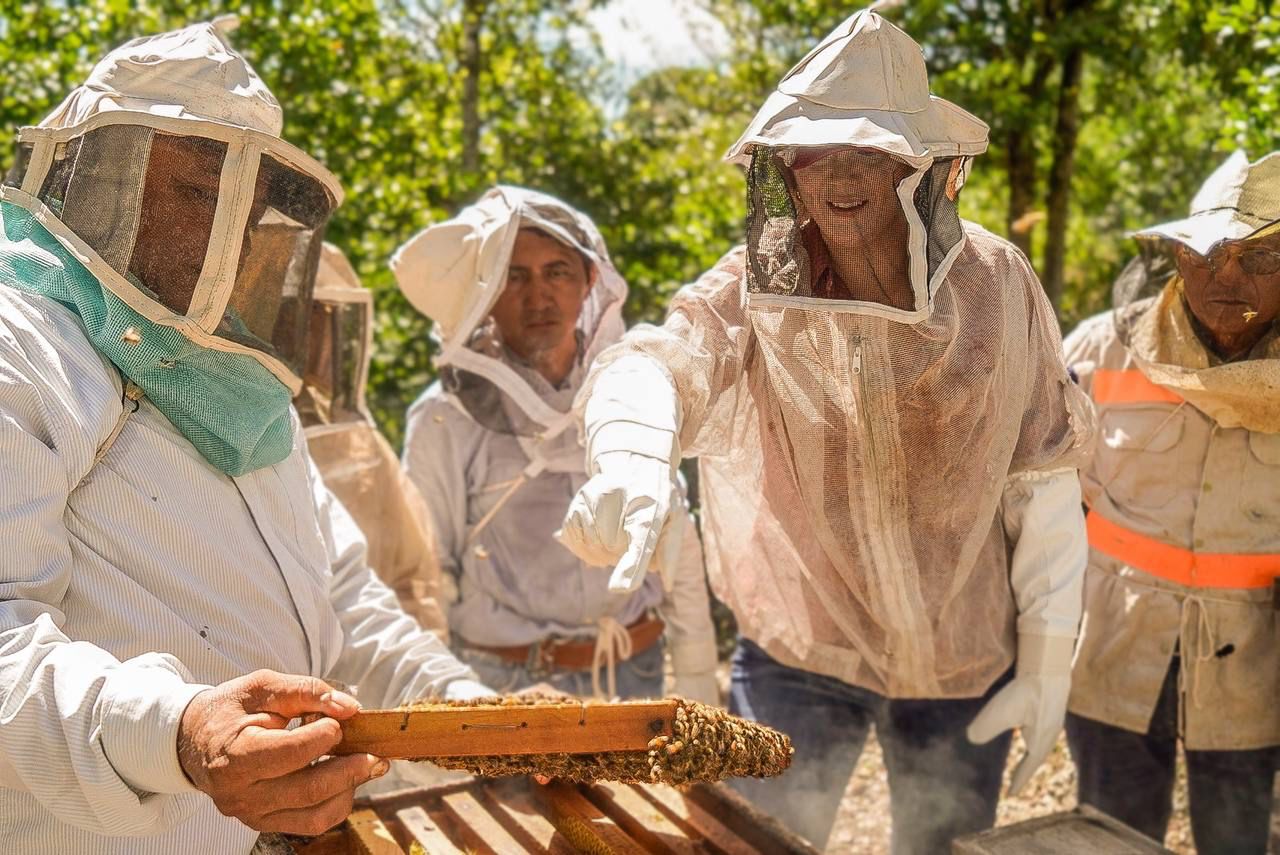 En Chankom Verónica Camino Farjat observó en el apiario de Jorge Chan Caamal, de la comisaría de Muchucuxcáh, las labores que realizan en el cuidado de las abejas para tener en cada ciclo productivo una buena cosecha de miel, que depende de la floración del campo que se da con las lluvias.