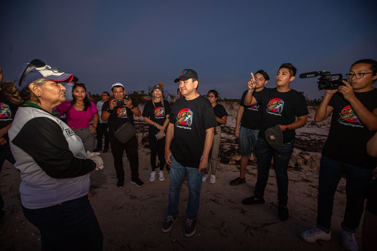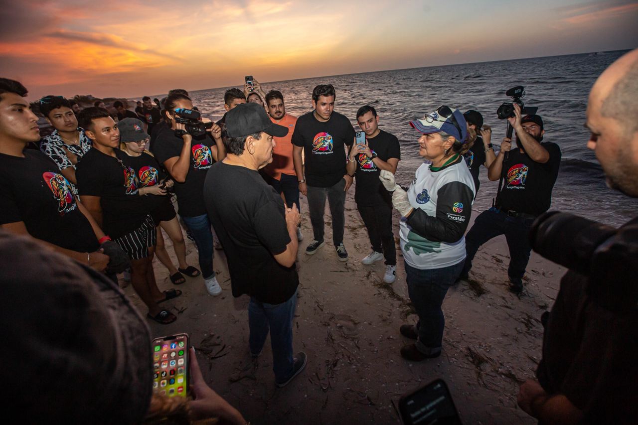 En la actividad, Liborio Vidal, estuvo acompañado de jóvenes creadores de contenido, gamers, empresarios, deportistas y tiktokers, quienes después de presenciar el conmovedor momento, agradecieron la invitación a generar conciencia sobre la importancia de preservar a las especies marinas que llegan a las costas yucatecas.