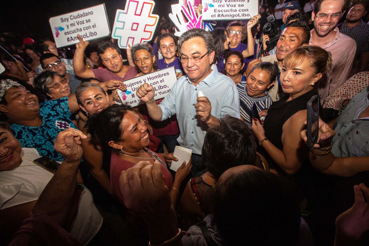 Liborio Vidal Aguilar, se reunió esta tarde con miles de vecinos de colonias del sur de Mérida, en un Encuentro Entre Amigos que viene realizando con los diversos sectores de los 106 municipios del estado.