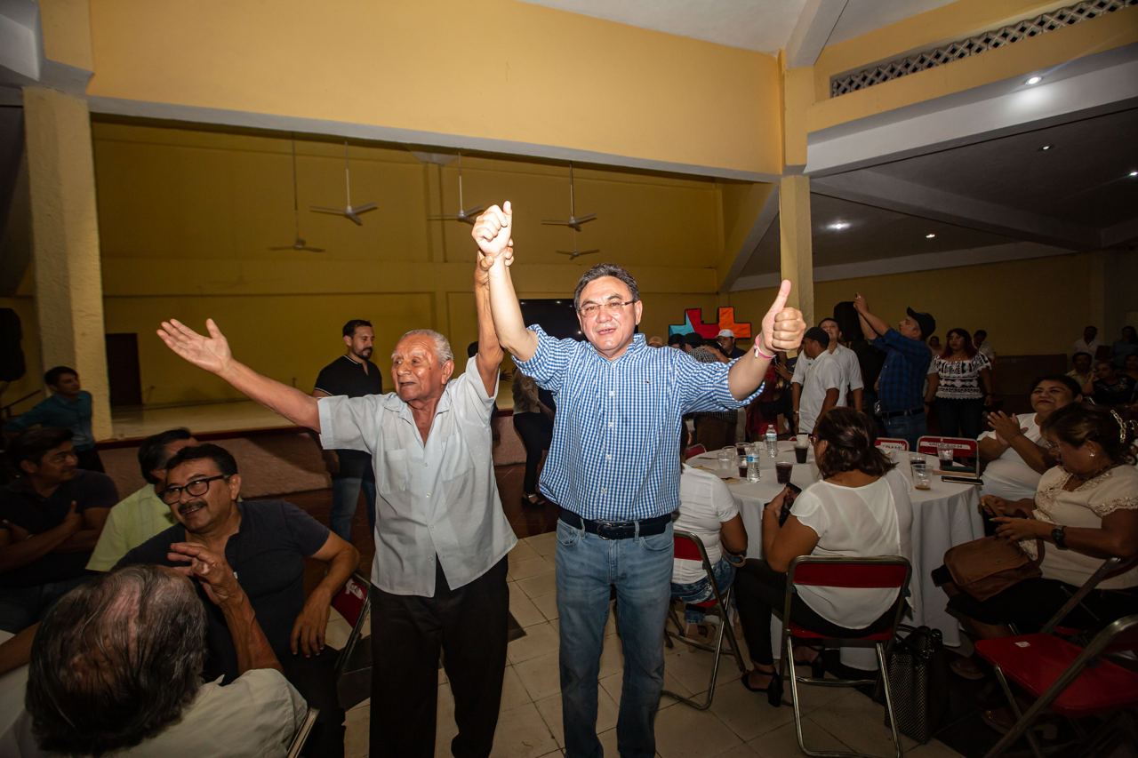 En el local social de la CTM, Vidal Aguilar se reunió con los vecinos de colonias como Alemán, Vergel, Nueva Kukulkán, Polígono 108, López Mateos y Amalia Solórzano, entre otras.