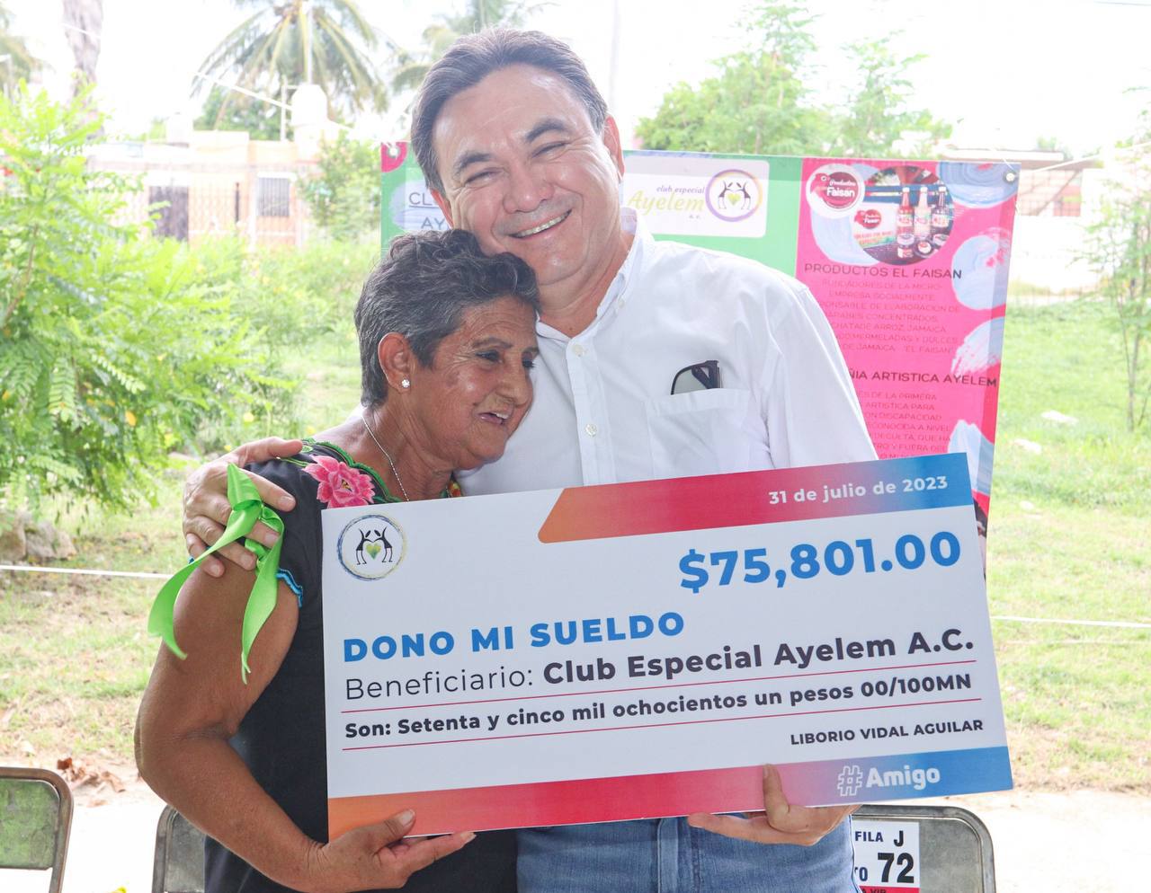 El secretario de Educación de Yucatán, Liborio Vidal Aguilar, entregó en donativo, el monto mensual de su salario, al Club Especial Ayelem A.C., institución fundada hace 25 años para apoyar a niñas, niños y adolescentes con algún tipo de discapacidad intelectual para su inclusión social, laboral y artística.