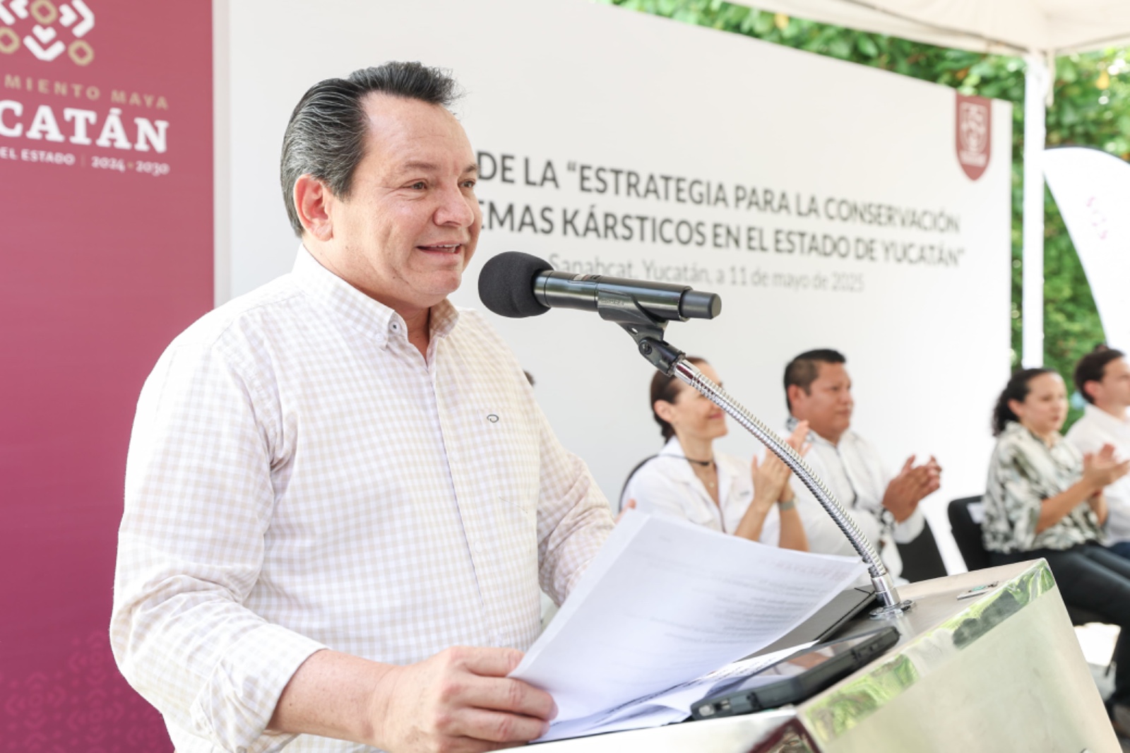 El Gobernador Joaquín Díaz Mena encabezó el inicio de la “Estrategia para la conservación de sistemas kársticos en el estado de Yucatán” que, con la participación de las comunidades, este 2025 contempla trabajos de saneamiento en 20 cenotes prioritarios, así como monitoreo científico permanente y la aplicación de tecnologías limpias en la gestión del agua.