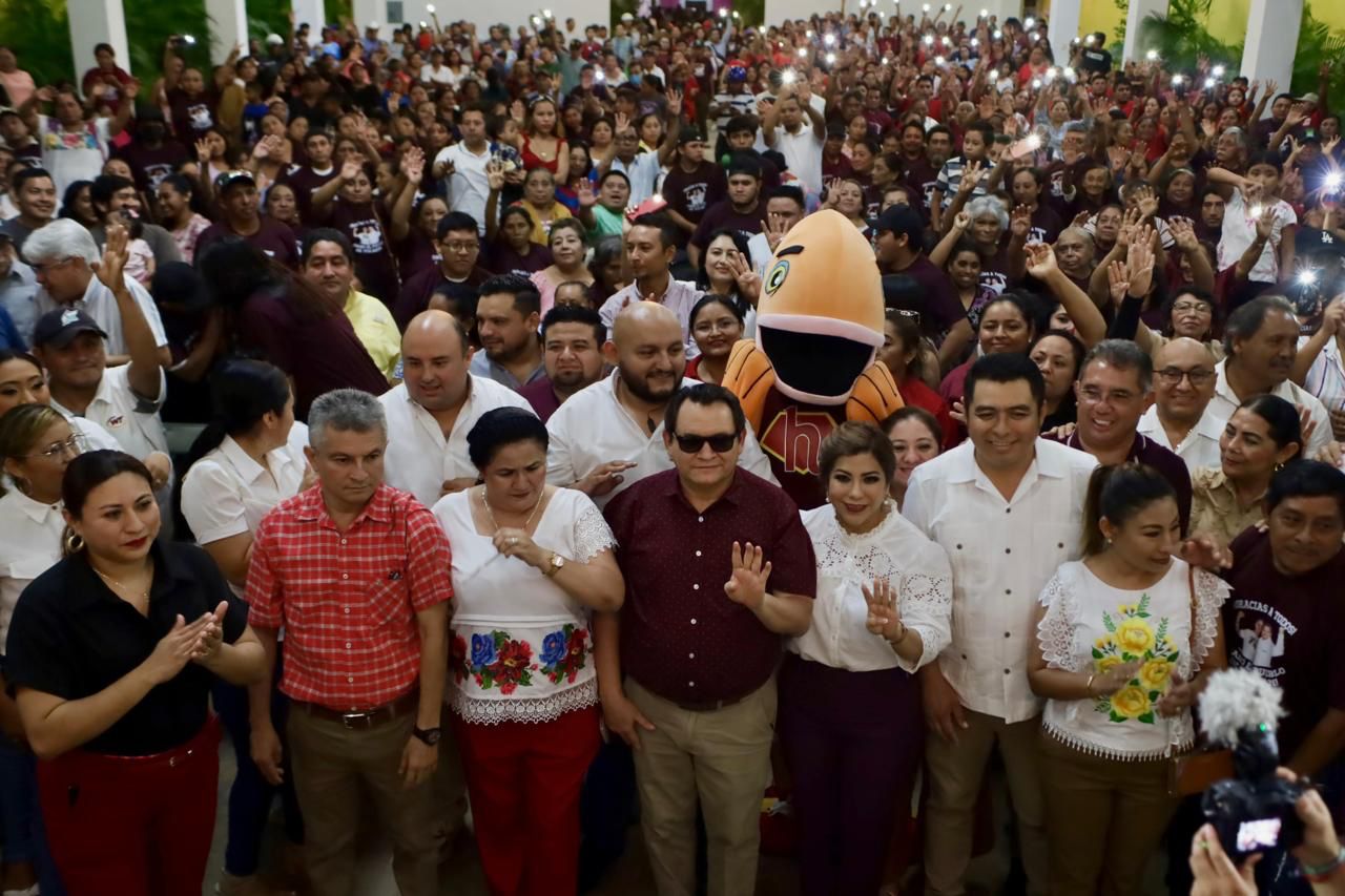 Ante legisladores locales y federales, la dirigencia de Morena encabezada por Omar Pérez Avilés y los coordinadores estatales de la campaña, Huacho Díaz Mena reiteró que, en el Gobierno Estatal y en el Federal con la Dra. Claudia Sheinbaum, encontrarán el respaldo a sus gestiones y demandas, para garantizar que el bienestar social y la Cuarta Transformación llegue a cada rincón de Yucatán.