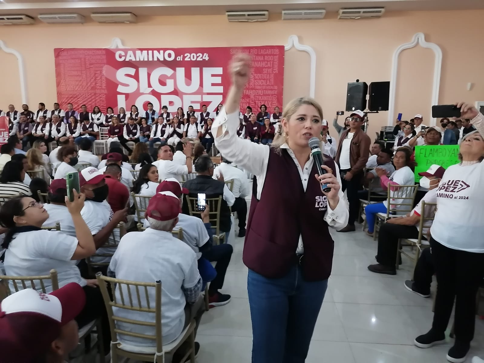 Puntualizó que en el 2024 se consolidará el proyecto y el camino de la transformación en este estado, Alejandra Peña invitó a los militantes a no abandonar la lucha y seguir apoyando el movimiento, a caminar en unidad, a paso firme para que siga López, porque con López estamos “agusto”.