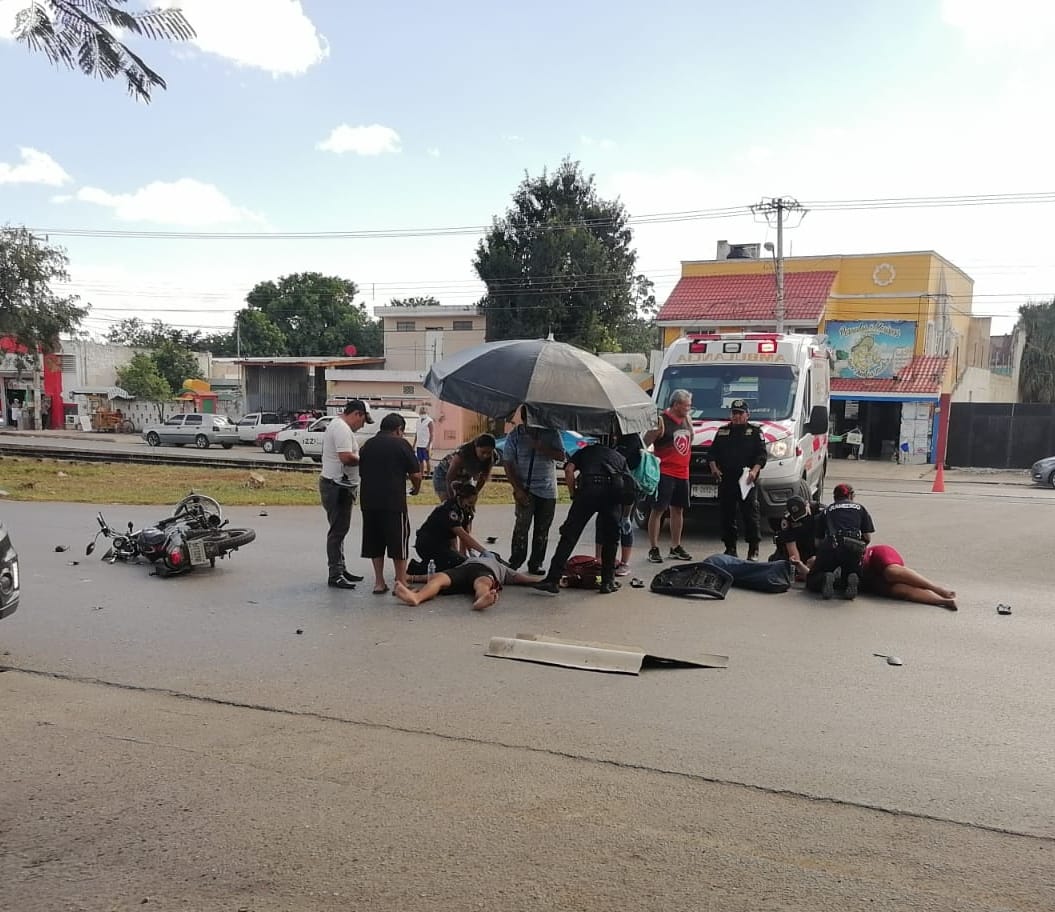 Un motociclista con una pasajera que tenían la preferencia de circulación en la calle 45 con el cruzamiento 32 sufrieron lesiones en un incidente de transitaban.