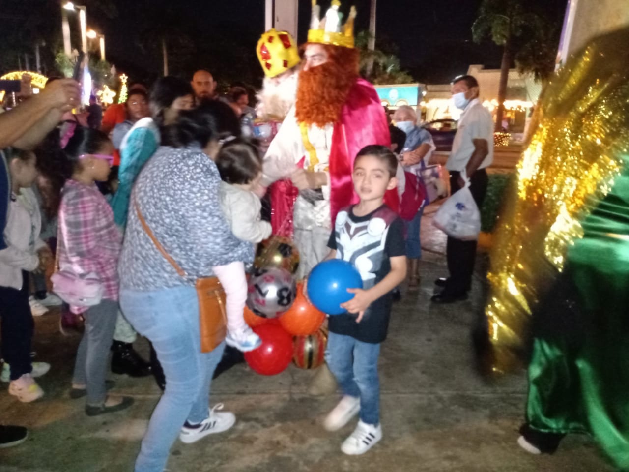 Cientos de pequeños que se encontraban acompañados de sus padres el viernes por la noche en el parque Las Américas, quedaron felices, cuando Los Reyes Magos hicieron acto de presencia y comenzaron a entregarles regalos.