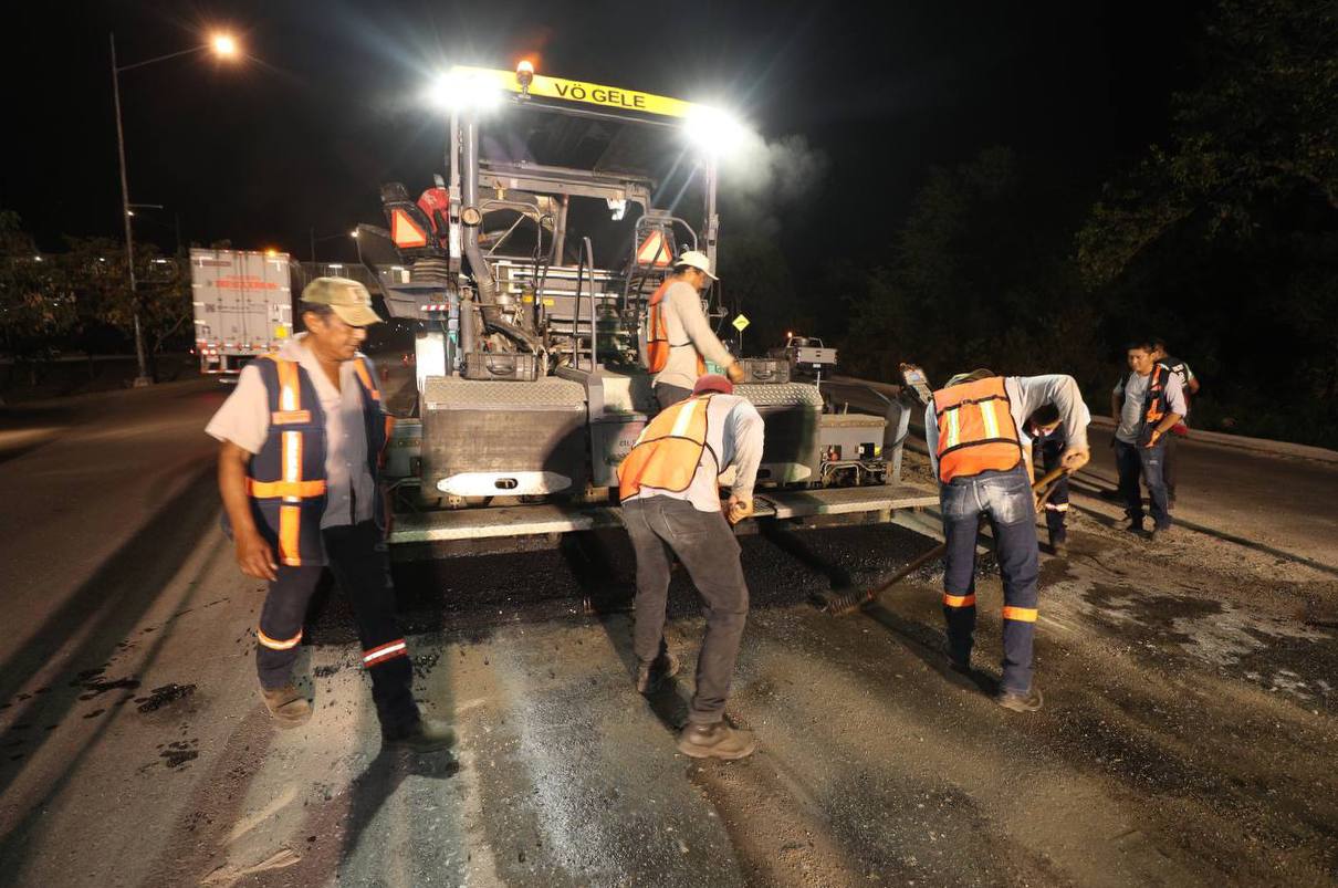 Asimismo, se trabaja en coordinación con la Secretaría de Seguridad Pública (SSP) para garantizar la seguridad, mientras se lleva a cabo estas acciones, de manera gradual, las cuales incluyen fresado, renivelación, bacheo, colocación de carpeta de concreto asfáltico y señalamientos, y se estima que concluyan en los próximos días.