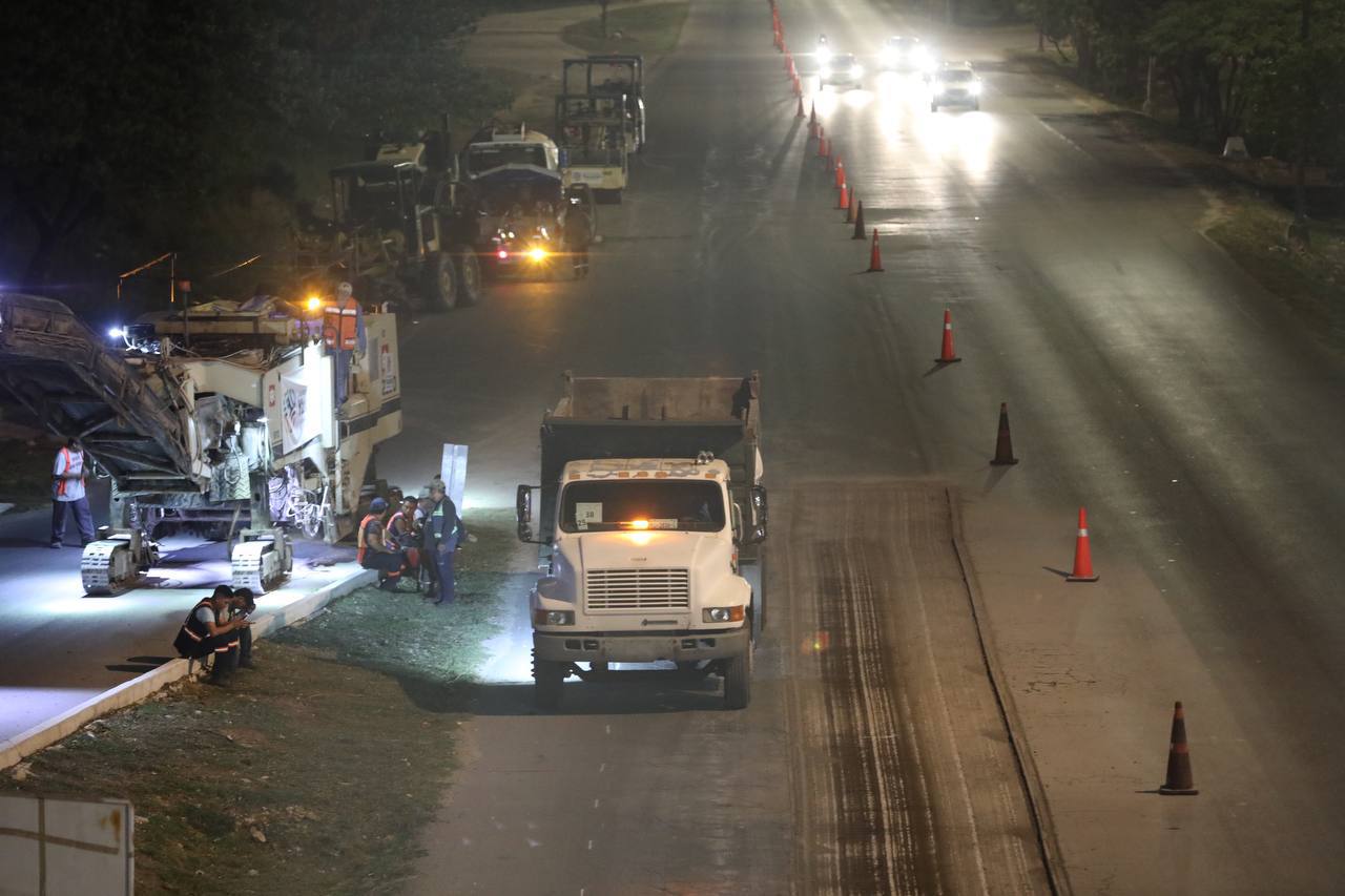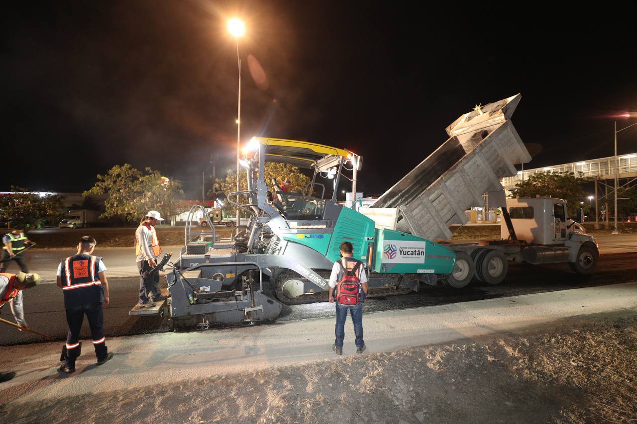 La noche del pasado jueves, comenzaron las labores en el octavo tramo, que inicia 50 metros antes del paso peatonal y la salida al banco Susulá, y termina antes del paso inferior hacia la carretera Hunucmá-Celestún.