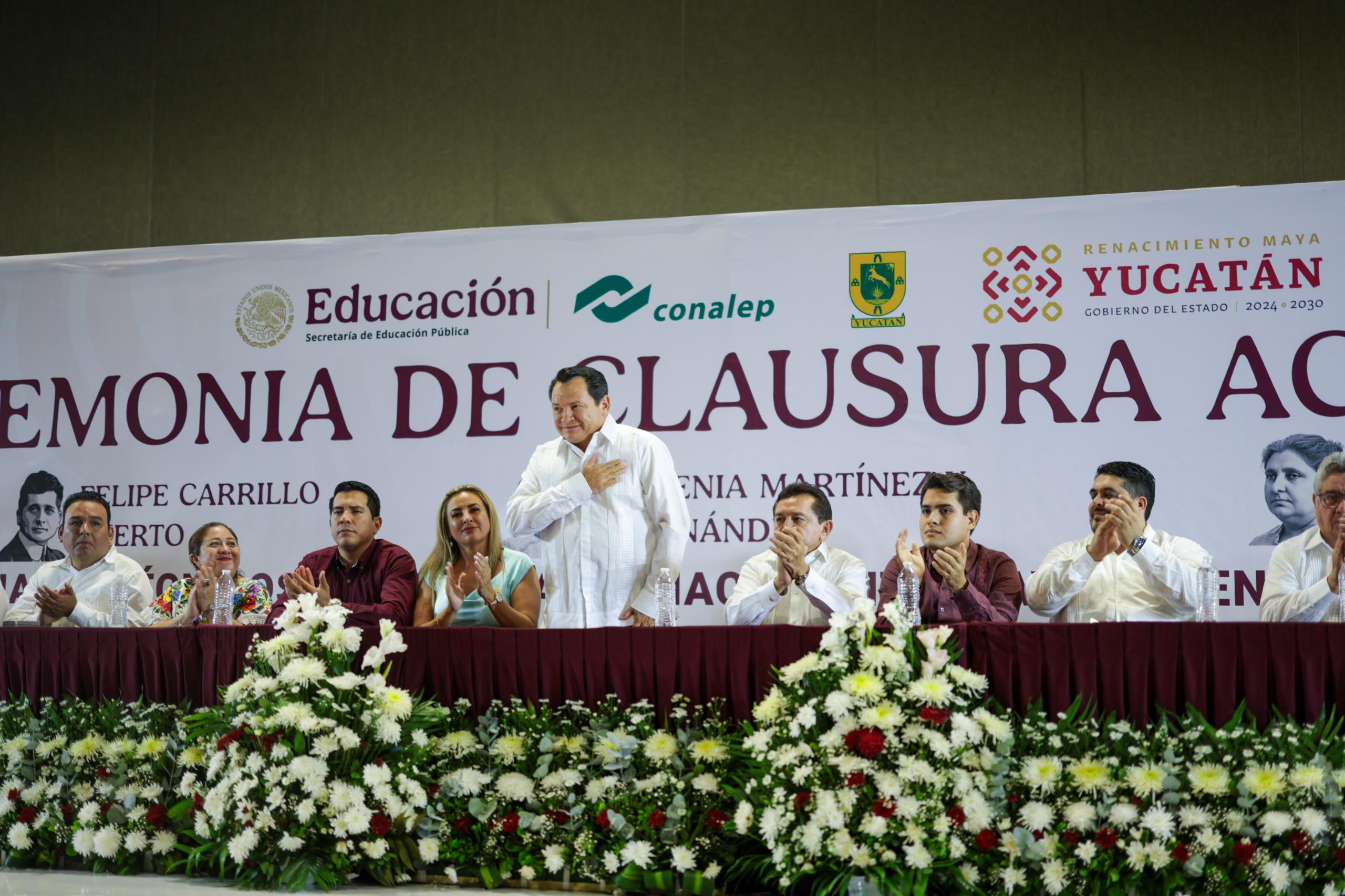 Por su parte, el director general del Conalep Yucatán, Felipe Duarte Ramírez, destacó que las y los egresados se distinguen por su formación integral, principios y valores.