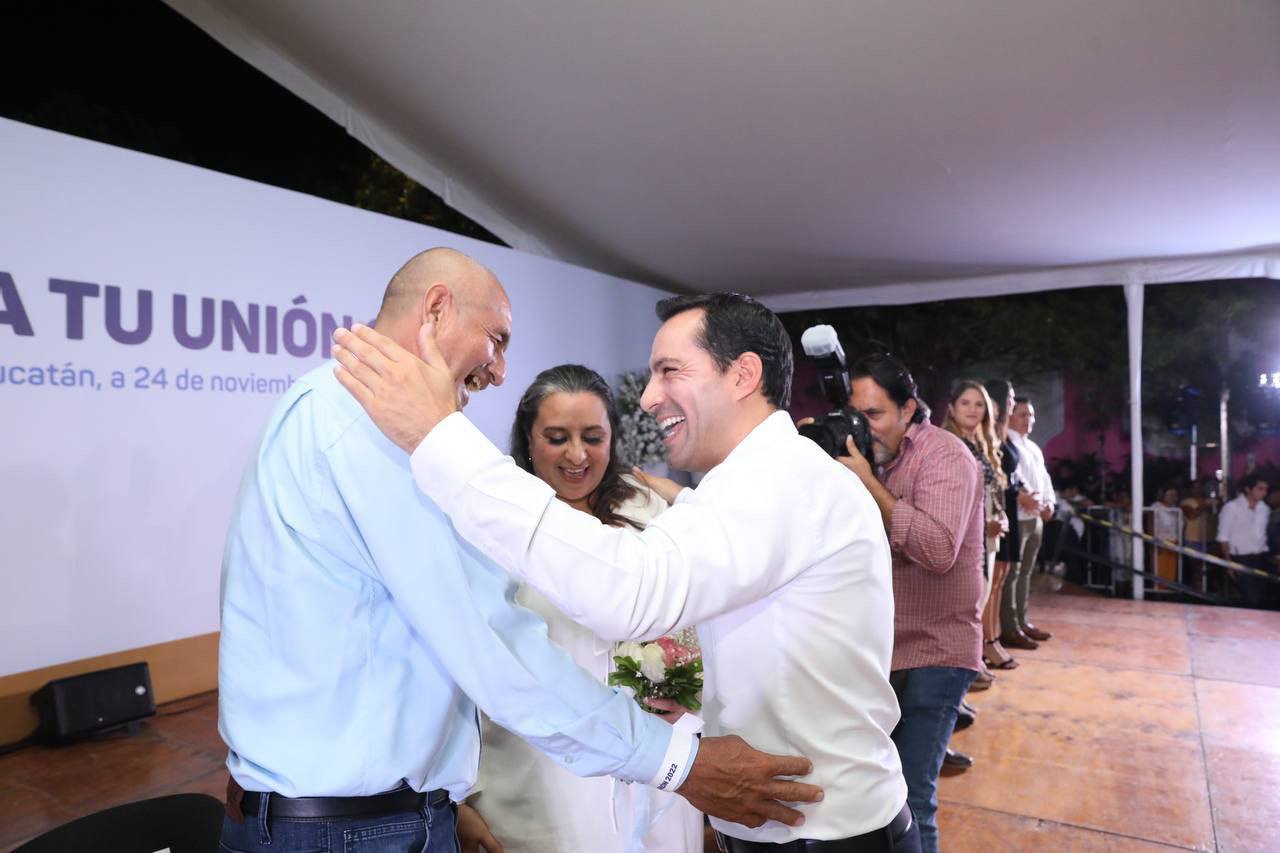 En el marco de la edición 46 de la Feria Yucatán Xmatkuil 2022, Vila Dosal encabezó esta ceremonia, donde más de 500 parejas provenientes de 81 municipios de todo el estado decidieron dar certeza jurídica a su relación contrayendo matrimonio gracias a este esquema, que permite que los contrayentes realicen el trámite de manera gratuita y puedan regularizar su situación.