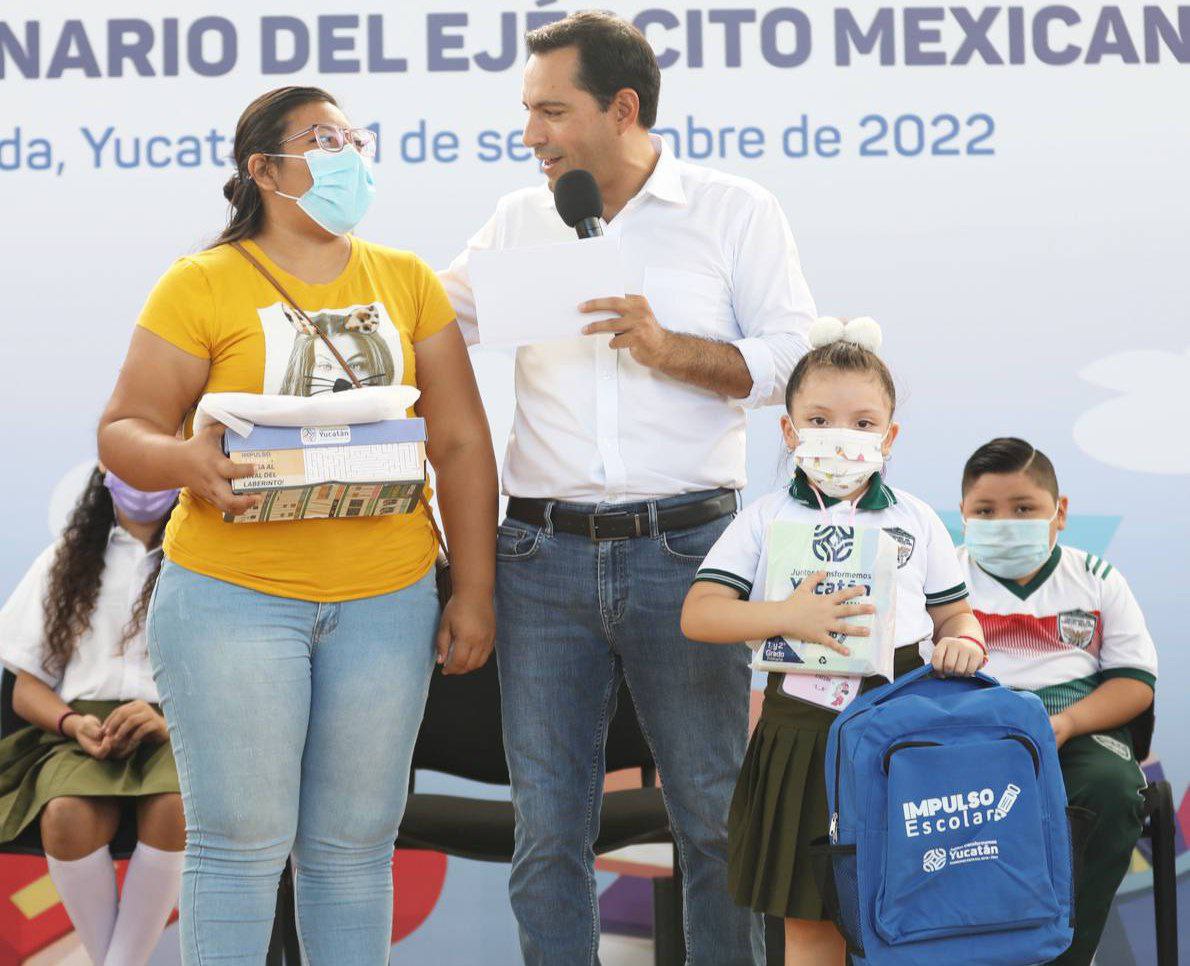 El Gobernador Mauricio Vila Dosal comenzó a entregar a estudiantes yucatecos, sus uniformes y paquetes de útiles escolares del programa Impulso Escolar, apoyo que representa un ahorro de 2,850 pesos por cada estudiante para los padres y madres de familia.