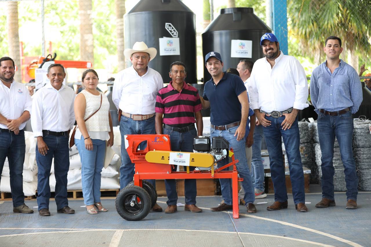 Junto al Secretario de Desarrollo Rural, Jorge Díaz Loeza, el Gobernador supervisó la distribución de apoyos del programa Peso a Peso, beneficiando a 65 productores de Sucopó con insumos y productos valorados en 795,450 pesos.