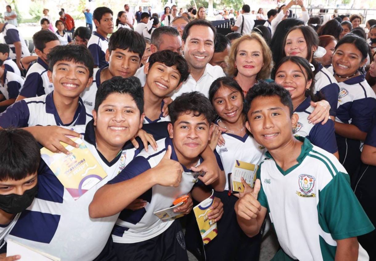 Acompañado del alcalde de Umán, Gaspar Ventura Cisneros Polanco y la titular de la Secretaría de la Cultura y las Artes de Yucatán, Loreto Villanueva Trujillo, Vila Dosal compartió que actualmente está leyendo el libro “Mi Historia”, que trata sobre el primer ministro de Dubai, al tiempo que recomendó a las y los estudiantes escribirles a sus papás al menos cada año una tarjeta reconociendo el esfuerzo y sacrificios que realizan para que ellos salgan adelante.