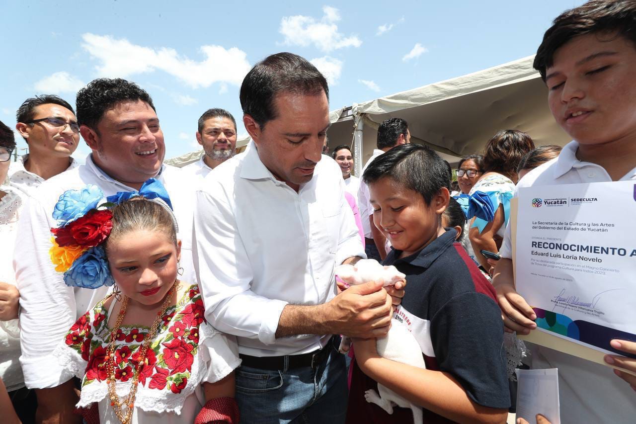 Loreto Villanueva Trujillo, de la Secretaría de la Cultura y las Artes, colabora con el Gobernador para dotar a Kanasín de un kit de equipamiento cultural. Un esfuerzo por cultivar la sensibilidad artística y mantener un entorno de paz y seguridad.