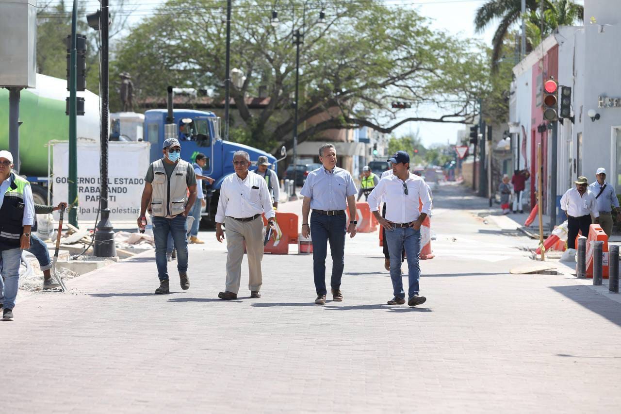 El Gobernador Mauricio Vila Dosal realizó un nuevo recorrido de supervisión sobre la calle 60, donde se realizan los trabajos de construcción del Corredor Turístico y Gastronómico, los cuales avanzan a buen ritmo conforme a lo programado y próximamente estarán listos para renovar la imagen del Centro Histórico de la capital y, con ello, detonar el turismo y la economía de la zona.