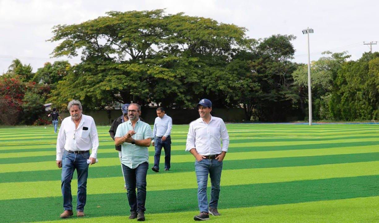 Los trabajos de modernización de 8 canchas de fútbol del Complejo Deportivo Kukulcán avanzan a buen ritmo, por lo que estarán listas próximamente para su entrega con el objetivo de otorgar un espacio digno y de calidad para practicar el deporte y este día fueron supervisadas por el Gobernador Mauricio Vila Dosal.