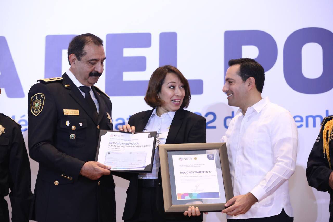 Acompañado del titular de la SSP, Luis Felipe Saidén Ojeda, Vila Dosal entregó reconocimientos a su destacada labor por mantener y cuidar la paz social del estado, a 476 policías y 628 elementos entre operativos y administrativos que cumplieron de 10 a 40 años de servicio dentro de la corporación policíaca.