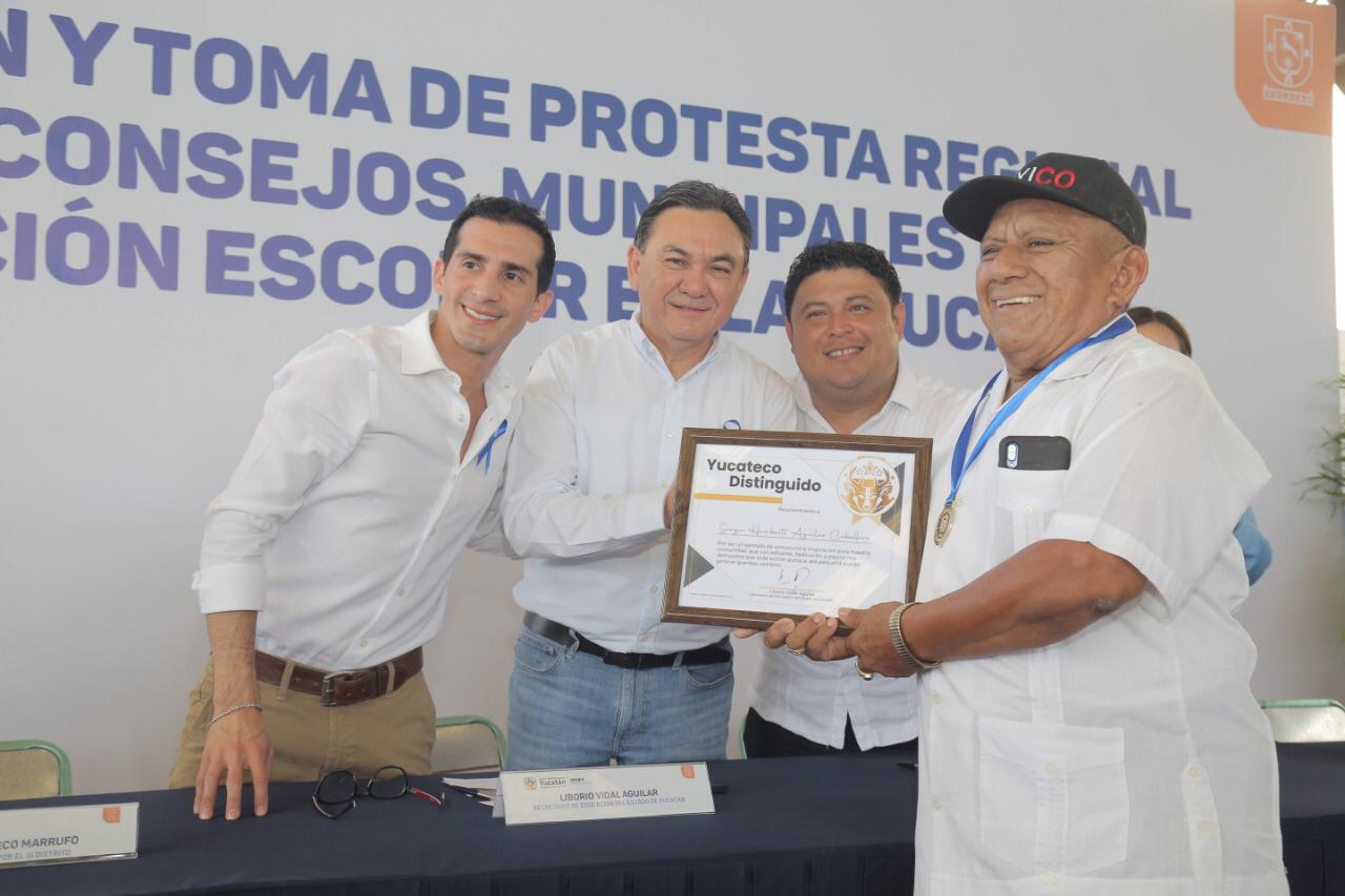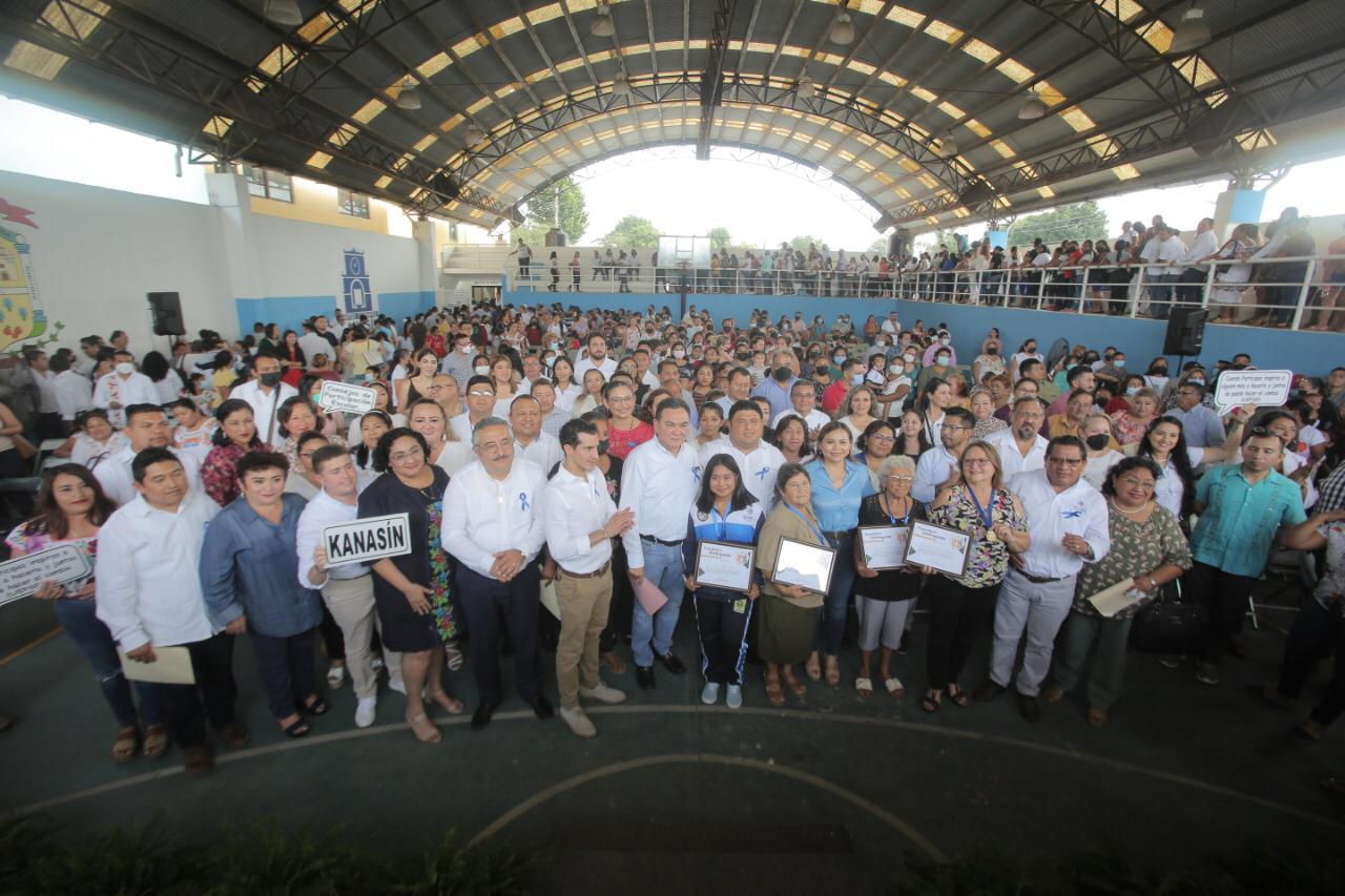 Acompañado del secretario de Educación de Yucatán, Liborio Vidal Aguilar; así como del Diputado Federal Rommel Pacheco Marrufo, y ante la asistencia de poco más de 1,000 personas, el edil kanasinense resaltó la importancia de que los padres de familia y los docentes también se involucren en el proceso de mejoramiento del sistema educativo básico.