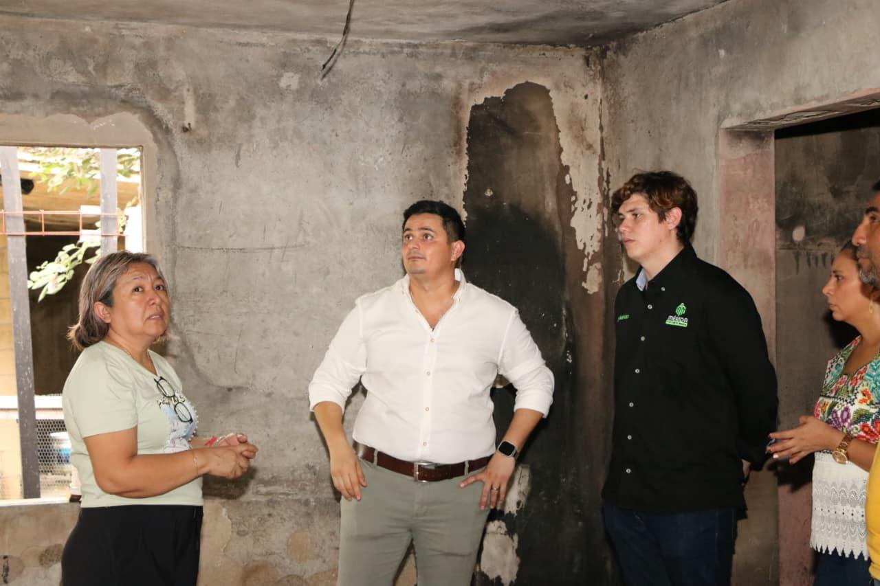 El secretario de Participación y Atención Ciudadana, Carlos Carrillo Paredes; el director del DIF Municipal, Gerardo López Fernández; y la subdirectora de Participación Ciudadana, Dafne López Osorio, acudieron al lugar para entregar una silla de ruedas, un tinaco, alimentos no perecederos, apoyo económico, ropa, blancos y diversos artículos esenciales, además de un refrigerador donado por la empresa Bomssa.