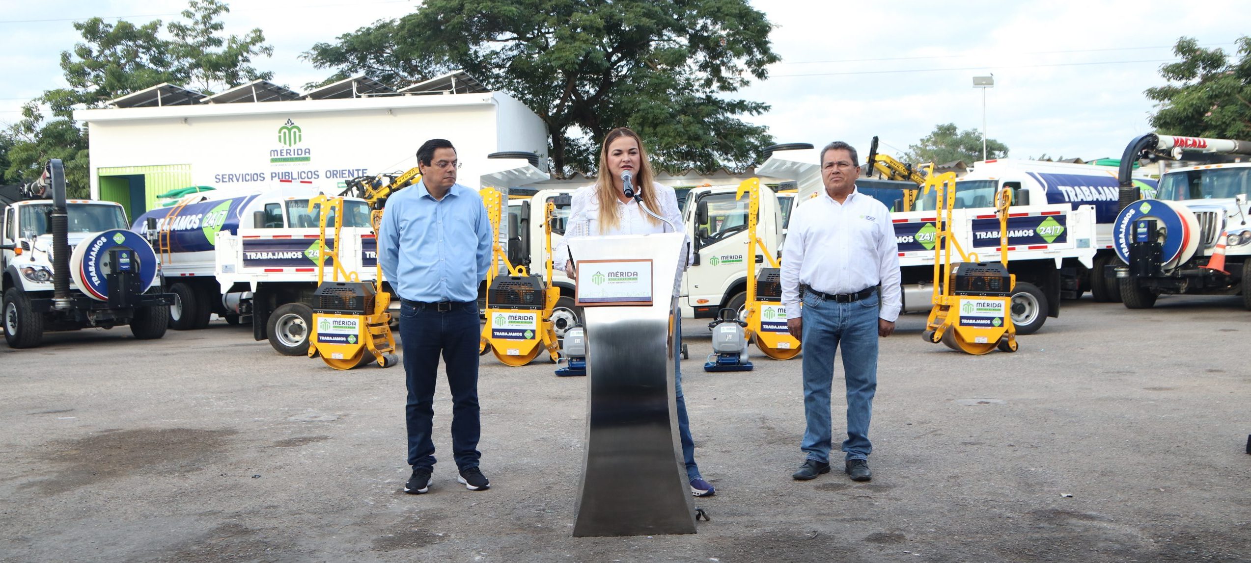 Añadió que estos 12 vehículos se unirán a los que están trabajando, y que también se atenderá las necesidades y encharcamientos y desazolve de pozos en el centro Histórico de Mérida.