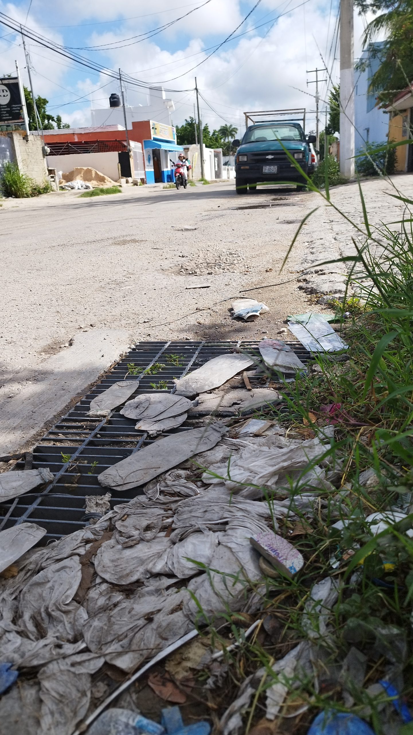 Pie de foto; “Preocupante” en la Colonia Díaz Ordaz, las rejillas de los pozos de desazolve pluvial están llenas de lodo y basura, consecuencias de la falta del olvido de Renán Barrera a esa colonia y sus habitantes… (Fotos de José Pallotta)