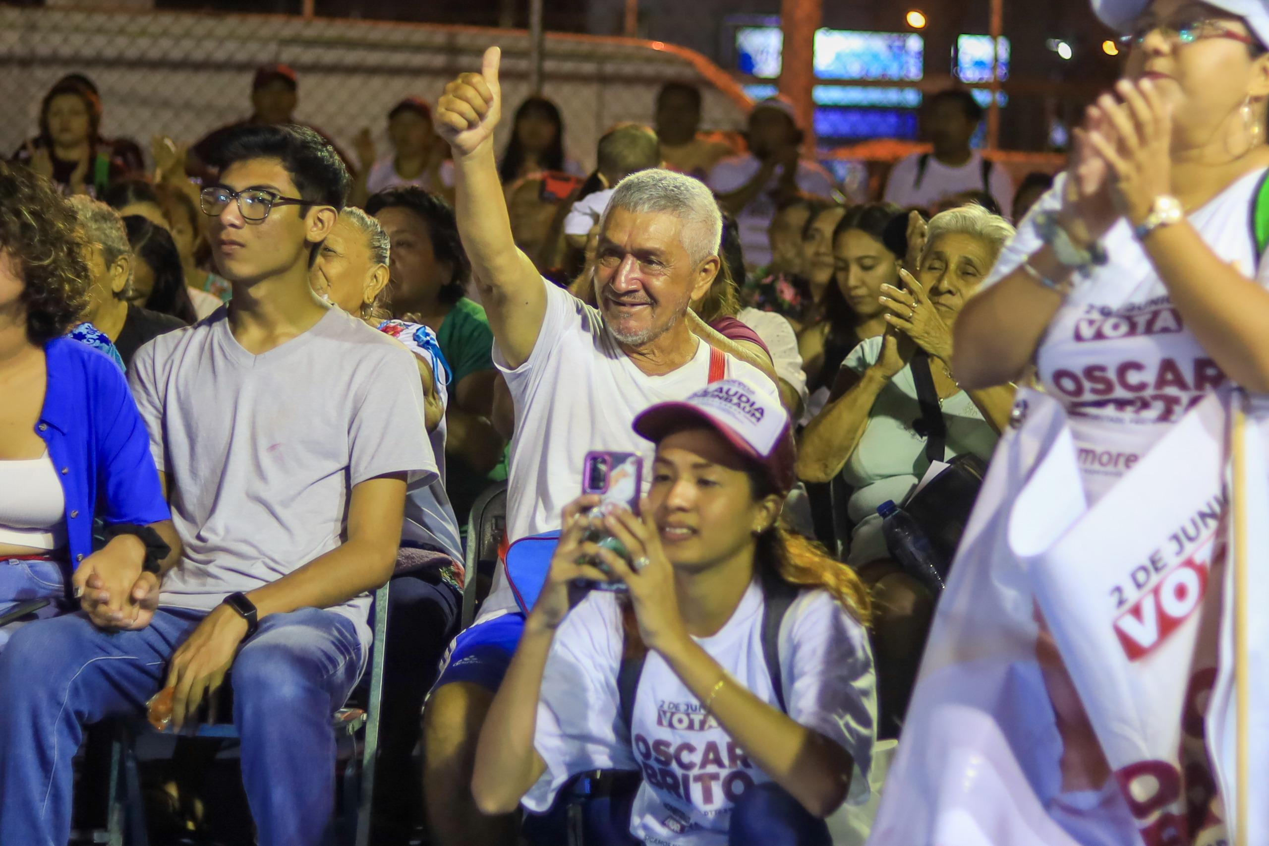 En esta actividad en la colonia meridana, Oscar Brito Zapata candidato a diputado federal por el tercer distrito señaló: “El 2 de junio Yucatán va hacer historia, por primera vez vamos a tener a un gobernador emanado del pueblo gobernando para el pueblo, nuestro amigo Huacho Díaz Mena”.