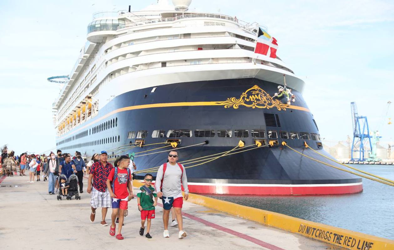 Con 2,597 pasajeros y 1,014 tripulantes a bordo, el crucero de la naviera Disney Cruise Line arribó por primera vez a la costa yucateca.