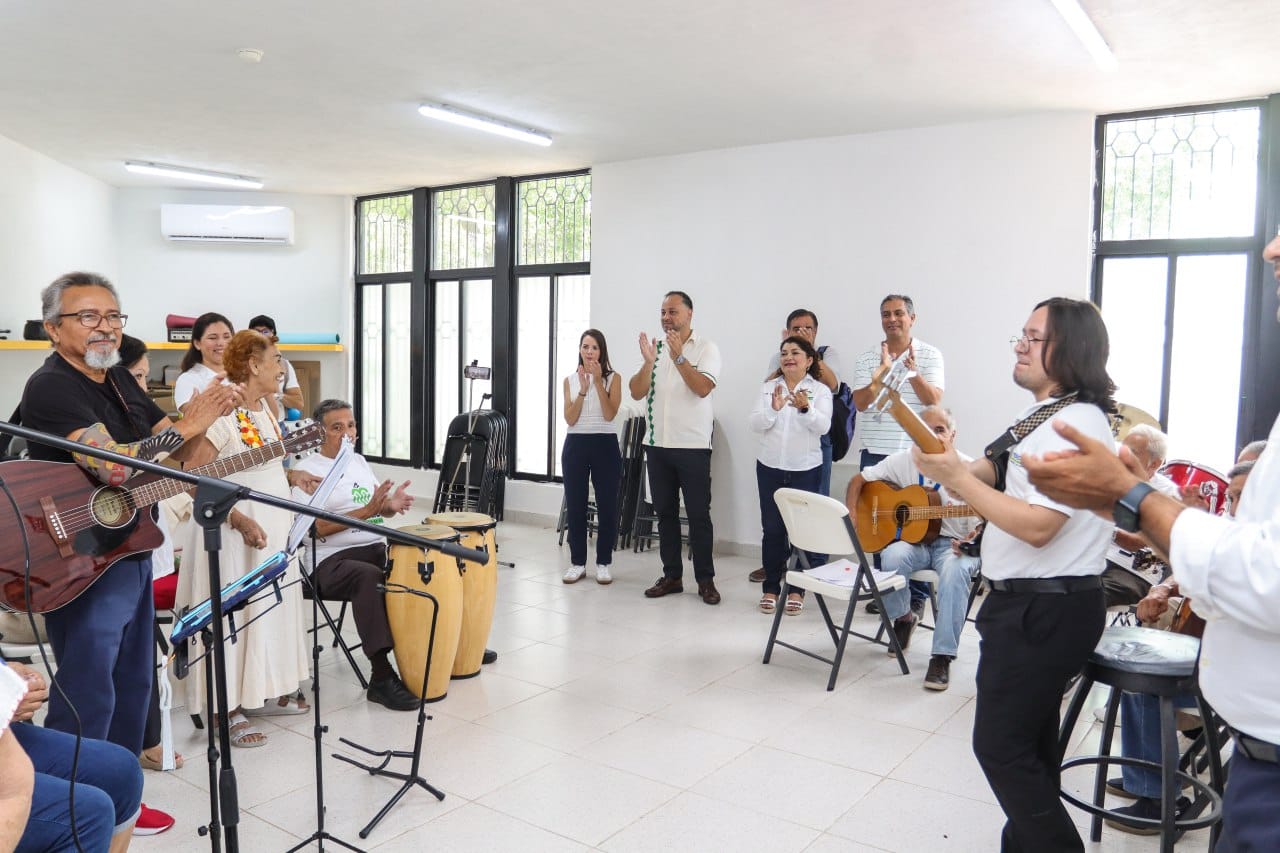 La jornada continuó con el traslado de las autoridades al Centro Integral para la Plenitud de las Personas Mayores “Renacer”, donde se les dio la bienvenida con distintas presentaciones. La maestra Andrea Paredes López mostró el trabajo del grupo de Castañuelas y Danza Española. El maestro Lorenzo Pech Yam dirigió una emotiva presentación del coro del centro.