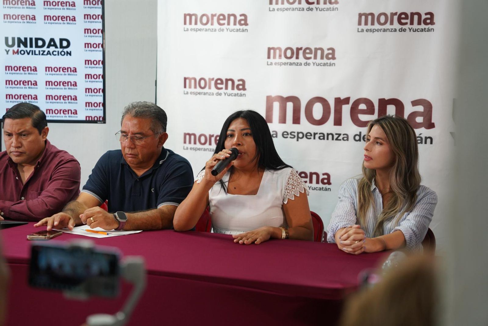En la rueda de prensa estuvieron presentes los diputados electos Alejandro Cuevas Mena y María Esther Magadán Alonzo, así como los candidatos Raúl Alvarado Naal (Progreso), Melissa Puga Rodríguez (Izamal), y Marlene Martin Gio (Hunucmá), junto con el representante legal de Morena, Christian Hurtado Can, y el dirigente estatal de Morena, Omar Pérez Avilés…(OGY)