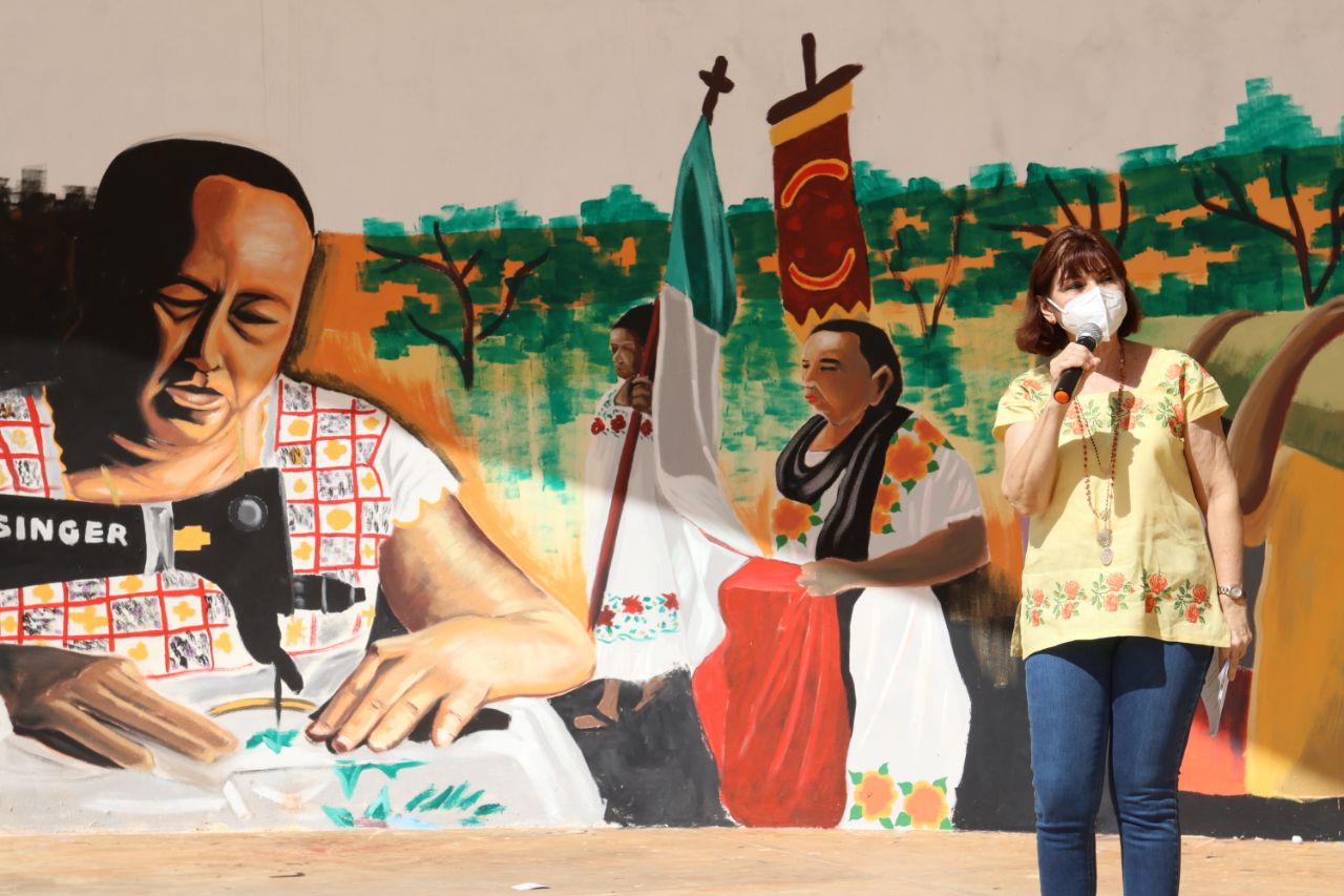 Sofía Yeudiel Kancab Castro, con 12 años de edad, resaltó la importancia de participar en el proyecto y comentó que “trabajar en el mural fue divertido y emocionante, porque se trata sobre la cultura; se puede ver a las señoras bordando, a los gremios, el palo de la corrida y a los señores bajando los cítricos, que es lo que hacemos aquí”.