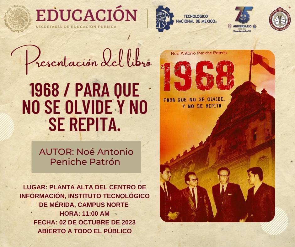Hoy se llevó a cabo la presentación del libro “1968 para que no se olvide y no se repita” en el marco de la ceremonia del 2 de octubre en las instalaciones del TecNM Campus Mérida.