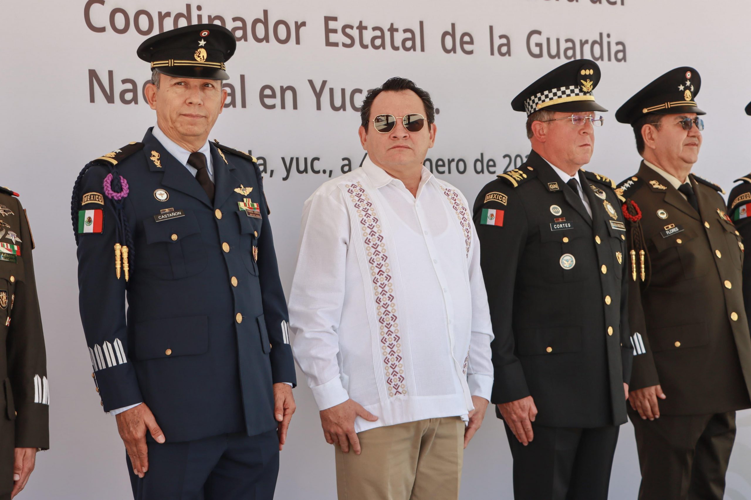 En una ceremonia llevada a cabo en las instalaciones de la Guardia Nacional en Ciudad Caucel, Yucatán, el Gobernador Joaquín Díaz Mena, en compañía del comandante