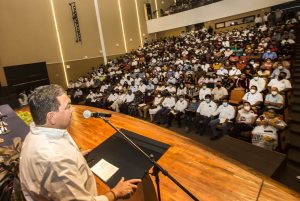 El teatro de la ciudad de Valladolid, José María Iturralde Traconis, fue sede de la toma de protesta de los 12 consejos de la región, en ceremonia encabezada por el secretario de Educación del Gobierno del Estado de Yucatán, Liborio Vidal Aguilar. En el evento estuvieron representantes de Cuncunul, Chichimilá, Tekom, Tinum, Chemax, Dzitás, Kahua, Quintana Roo, Tixcacalcupul, Uayma, Temozón y Valladolid, como testigos el diputado federal del distrito I, Sergio Chalé Cauich; el diputado local del distrito XI, Luis Fernández Vidal, así como autoridades educativas, alcaldes, sindicatos, docentes, madres y padres de familia. Liborio Vidal dijo que la educación de calidad es posible con una comunidad participativa, que realice las gestiones necesarias y trabaje en colaboración con las autoridades en las acciones que eleven la excelencia educativa y fomenten la igualdad de oportunidades para los centros de Educación Básica. “Un mejor futuro para nuestras niñas y niños es responsabilidad de todos, y en este camino el magisterio yucateco es muy importante, ellos son los guías y formadores de las y los estudiantes que serán ciudadanos comprometidos con su entorno y la sociedad”, agregó. El secretario técnico de la Segey, Francisco Javier Chimal Kuk, explicó que estos organismos operan de una manera coordinada con las asociaciones de madres y padres de familia, docentes, autoridades educativas y de los ayuntamientos de cada uno de los municipios que integran la región.
