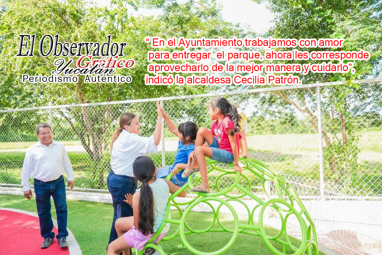 Queremos que niñas y niños sean felices, así que contar en Mérida y sus comisarías con parques y otros espacios recreativos accesibles contribuye a su desarrollo, afirmó la Presidenta Municipal Cecilia Patrón Laviada.