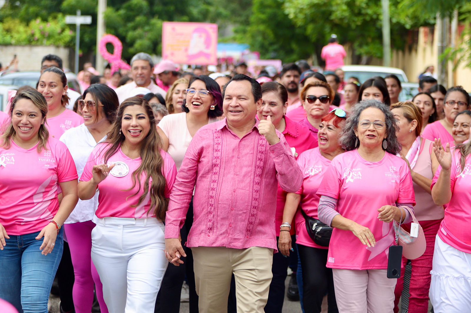 “Estamos aquí no solo para conmemorar, sino para tomar acciones. En esta caminata y en esta feria contra el cáncer de mama queremos brindarles información, herramientas y apoyo a todas las mujeres que lo necesiten. Queremos que sepan las mujeres de Yucatán que no están solas, por eso vamos a trabajar de la mano con el sector salud para que tengamos todos los servicios necesarios en nuestros hospitales para que nuestras mujeres sean atendidas a tiempo”, subrayó Díaz Mena en presencia de la directora general del DIF Yucatán, Shirley Edith Castillo Sánchez.