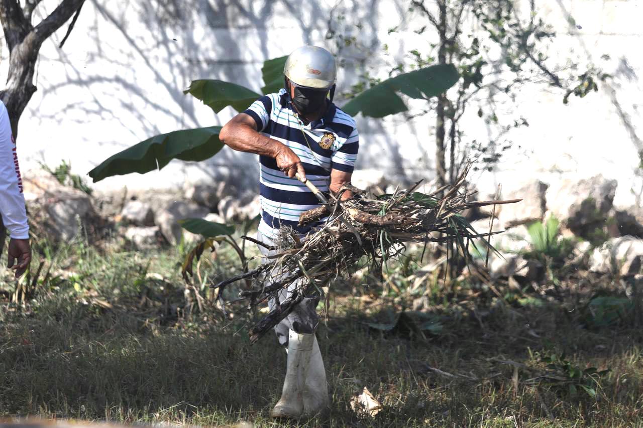 Palma Sabido es uno de los 385 pescadores beneficiados con el referido esquema en Dzidzantún, los cuales fueron divididos en 10 equipos, para realizar labores de limpieza, desyerbe, recoja de basura y tala de árboles, en las escuelas y parques de esta demarcación. Este apoyo representa un esfuerzo, por parte del Gobierno del Estado, de más de 56 millones de pesos.