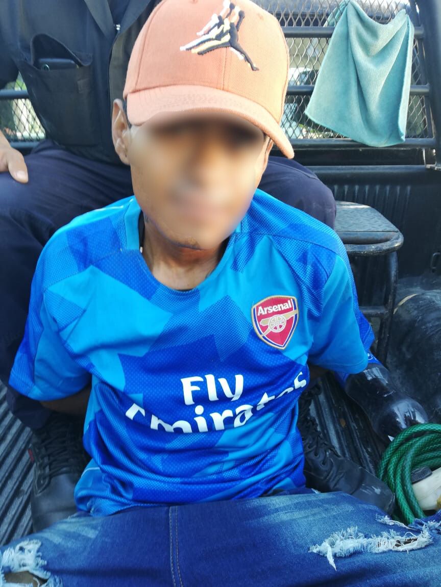 Agentes de la corporación montaron un operativo para dar con el presunto ladrón, a quien se le ubica cuadras más adelante de donde ocurrieron los hechos. Se le da alcance, se le identifica y se le detiene, no sin antes ponerse agresivo.