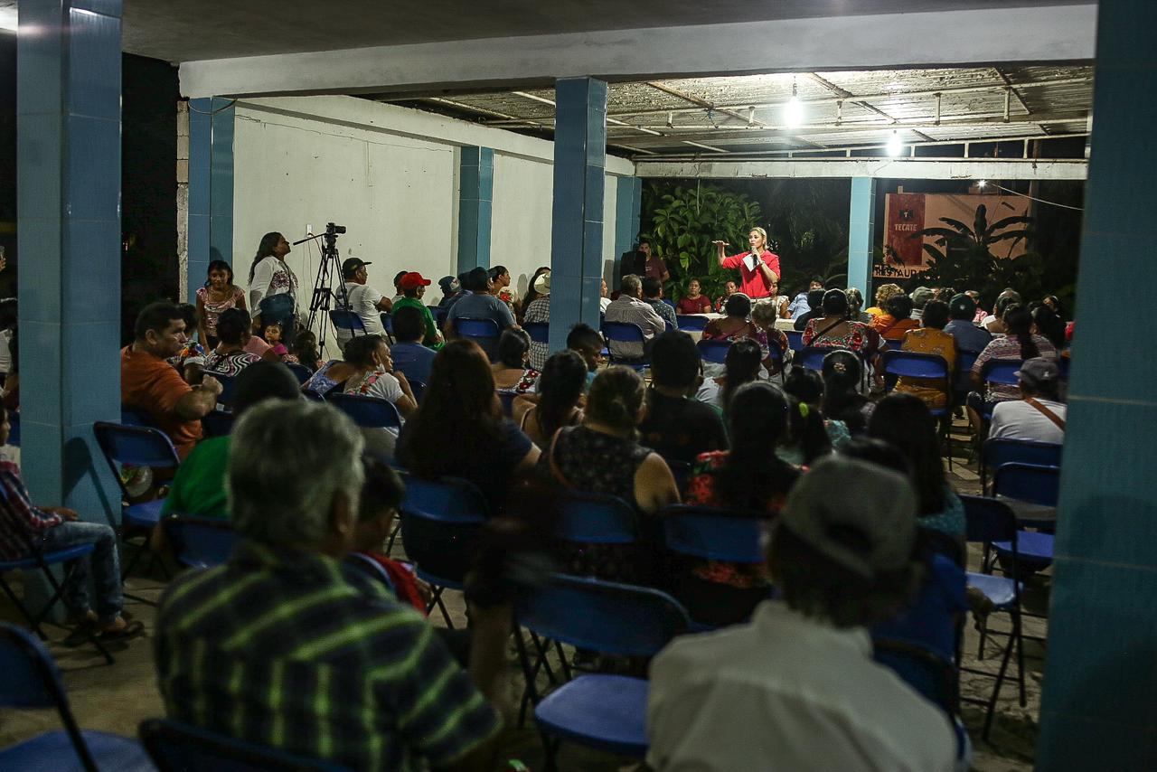 En la plática con más de 200 ciudadanos, Verónica Camino expuso que entre los cuidados necesarios que se deben implementar para conservar el agua libre de contaminación está evitar la instalación de granjas e industrias cerca de la llamada zona de “anillos de Cenotes”, para no dañar el manto freático, ocasionar problemas de salud e impactar al medio ambiente.