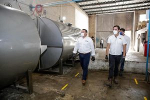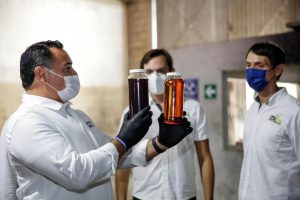 “Hoy estamos aquí en esta empresa liderada por tres jóvenes emprendedores, que se dedican a procesar biodiesel. La importancia viene que de los 300 lugares donde ellos captan el aceite residual (aceite de cocina ya utilizado y donado por los ciudadanos) 35 provienen de Puntos Verdes”, dijo.