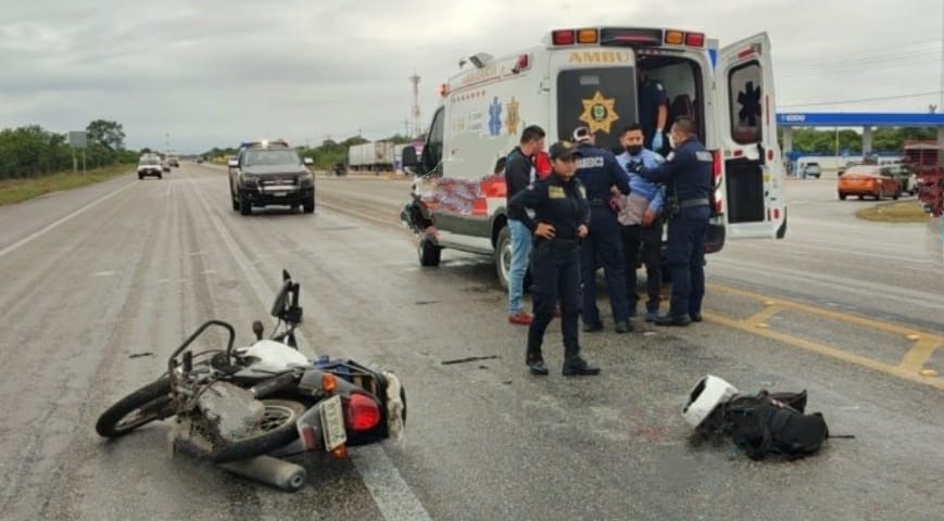 Con varias lesiones terminó un motociclista que circulaba sobre la carretera Merida-Tetiz, cerca del puente hacia Cuidad Caucel.