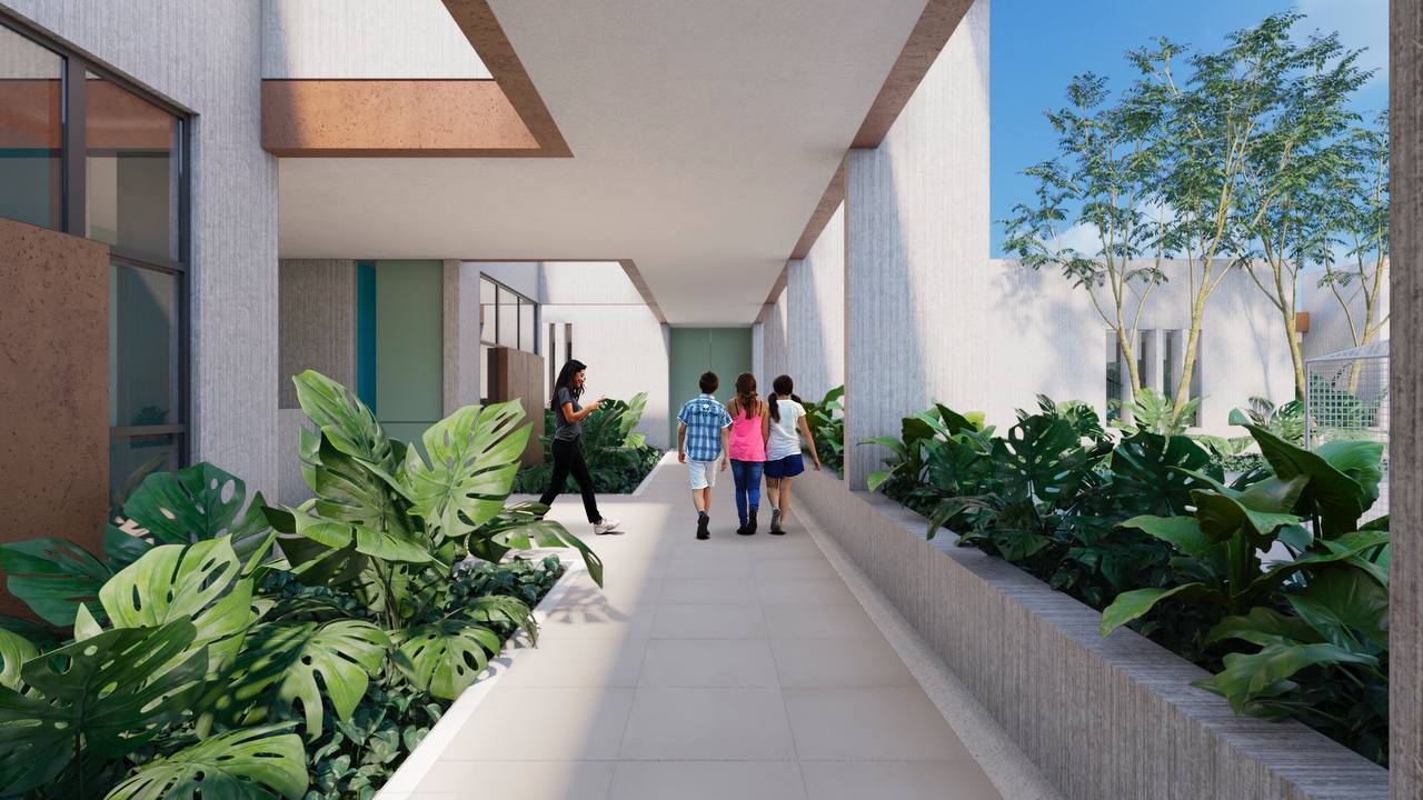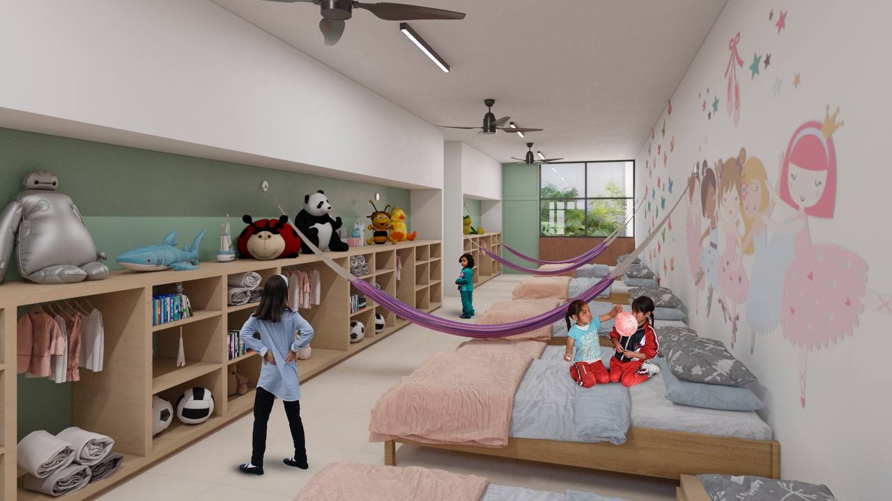 Además de contar con lo básico, como dormitorios, comedor y cocina, también tendrá zonas de recreación para cada grupo de edad, como juegos infantiles, canchas deportivas, alberca, biblioteca, anfiteatro, huerto, gimnasio, sala de usos múltiples, estimulación y entretenimiento.